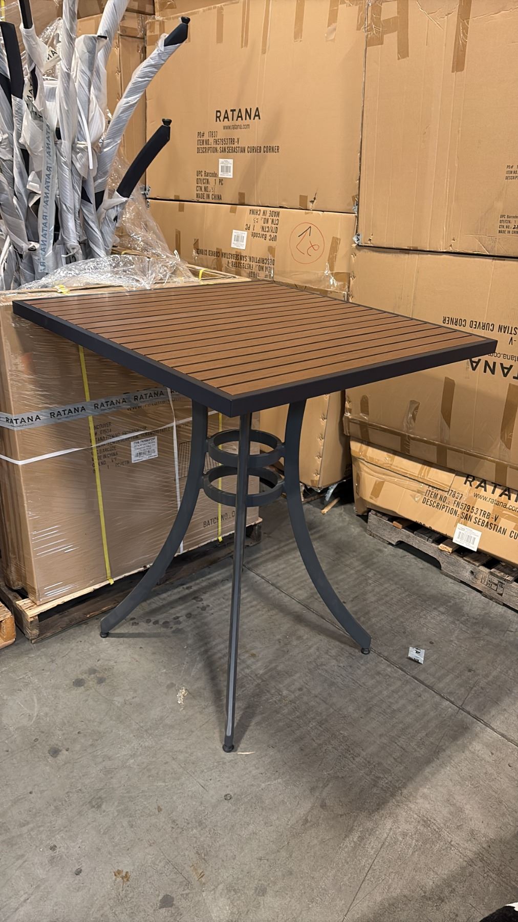 RATANA BAR HEIGHT PATIO TABLE WITH DURAWOOD TABLE TOP APPROXIMATELY 34 X34