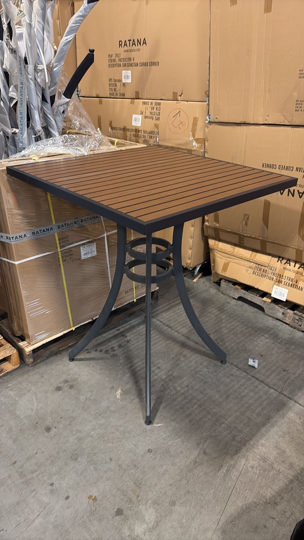 RATANA BAR HEIGHT PATIO TABLE WITH DURAWOOD TABLE TOP APPROXIMATELY 34"X34"
