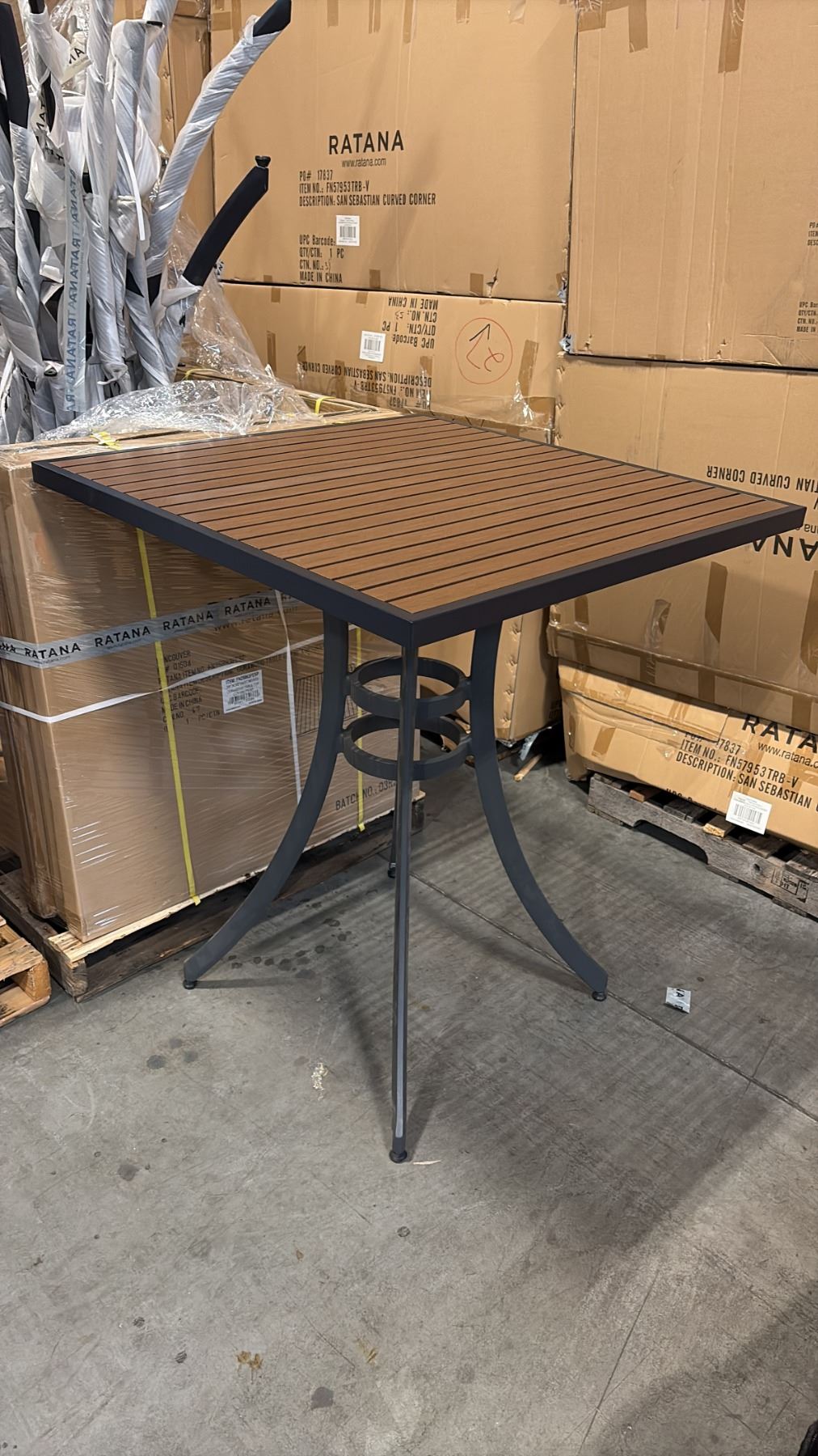 RATANA BAR HEIGHT PATIO TABLE WITH DURAWOOD TABLE TOP APPROXIMATELY 34 X34