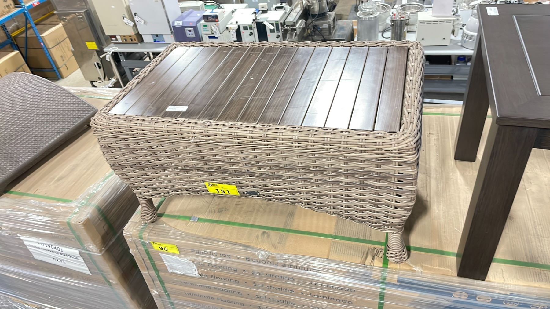 RATANA LIGHT BROWN PLASTIC RATTAN/ ALUMINUM TOP OUTDOOR PATIO COFFEE TABLE