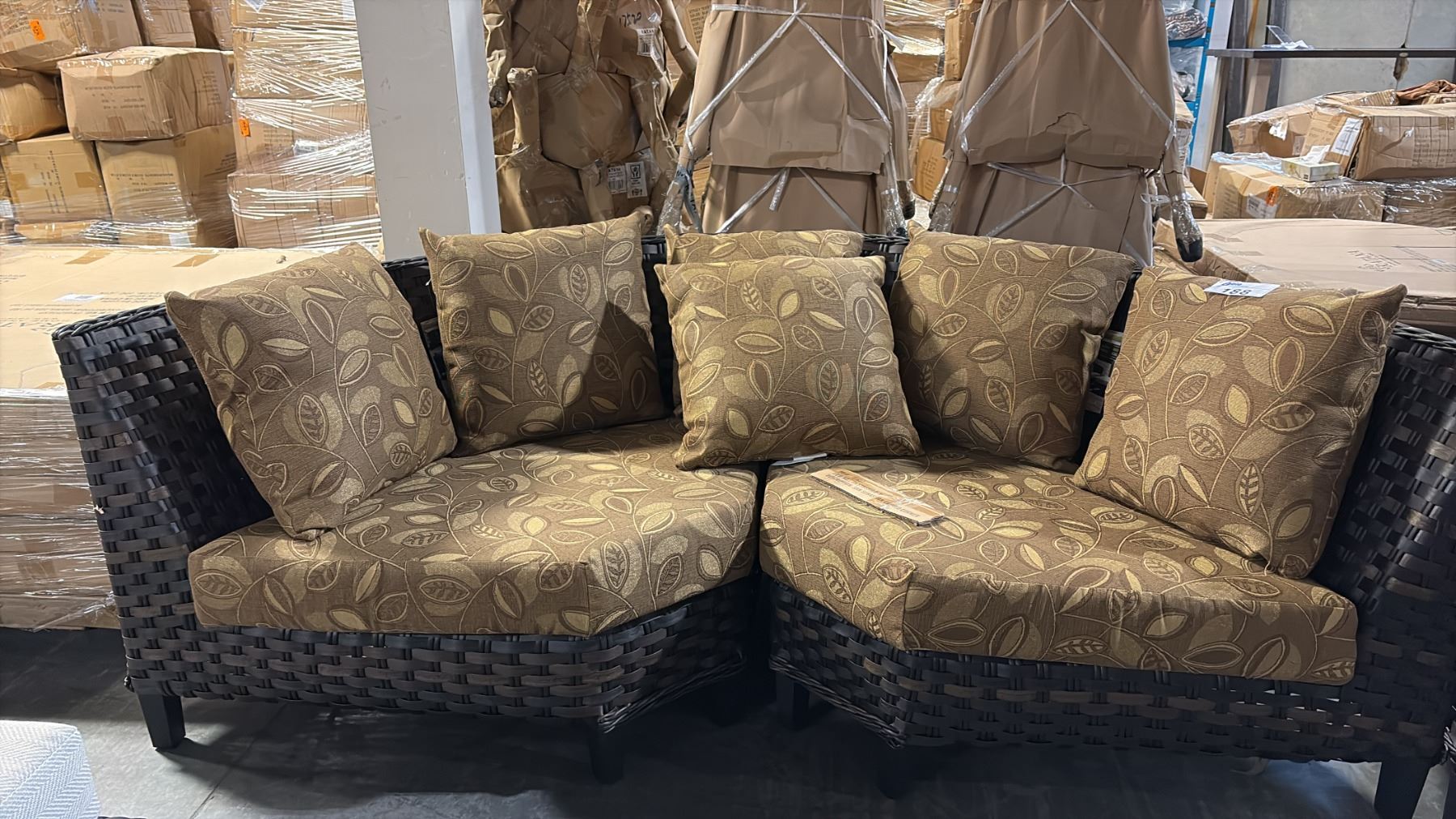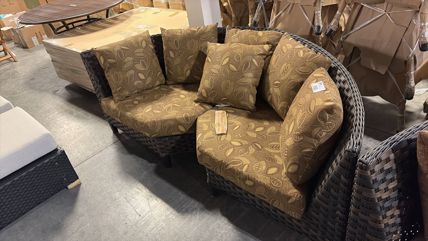 RATANA SAND SEBASTIAN LEAF PATTERN CURVED CORNER CUDDLE COUCH 80"W