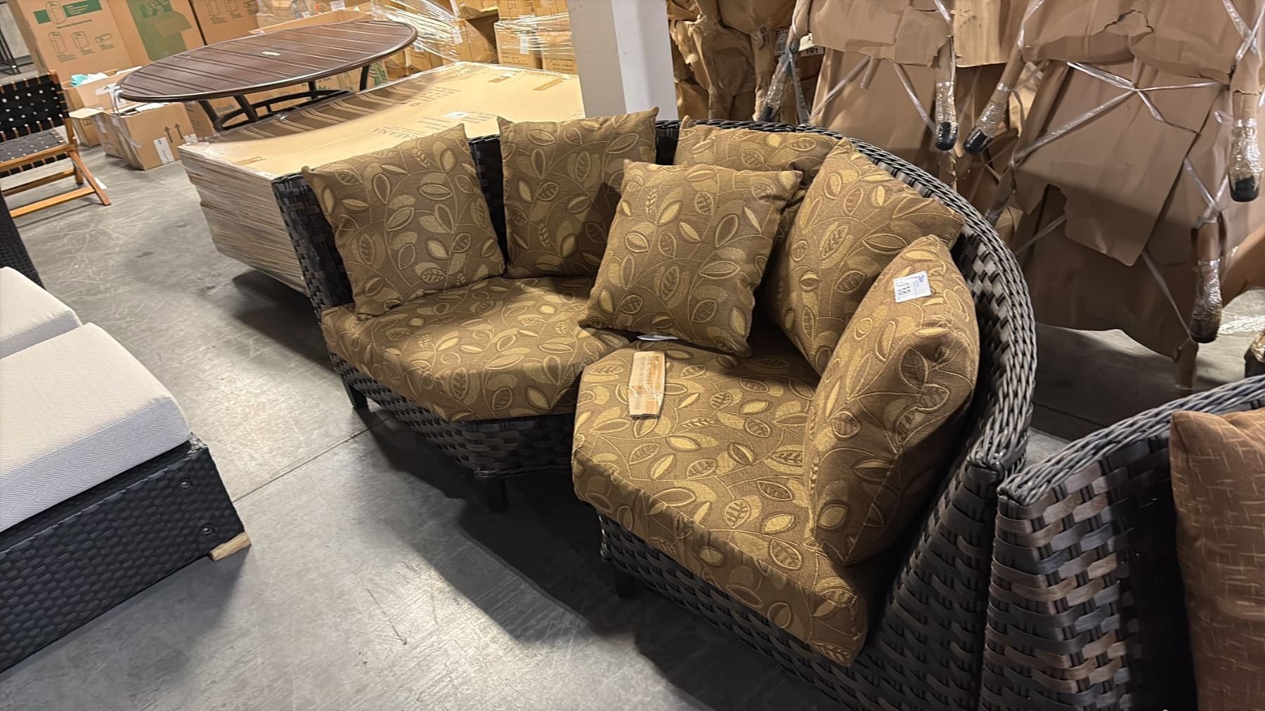 RATANA SAND SEBASTIAN LEAF PATTERN CURVED CORNER CUDDLE COUCH 80"W