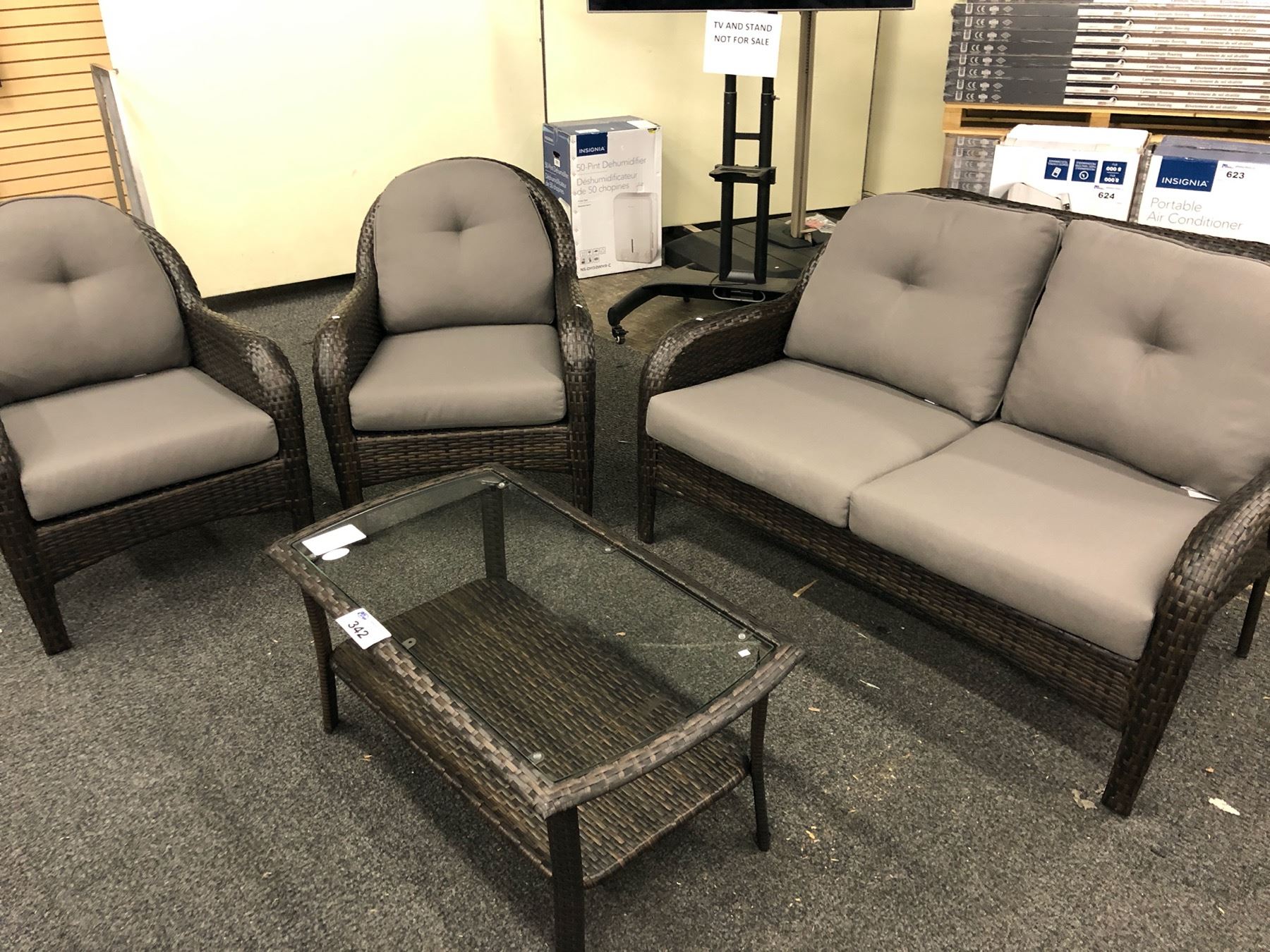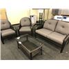 RATTAN STYLE CONVERSATION SET WITH 2 CHAIRS, COUCH AND TABLE