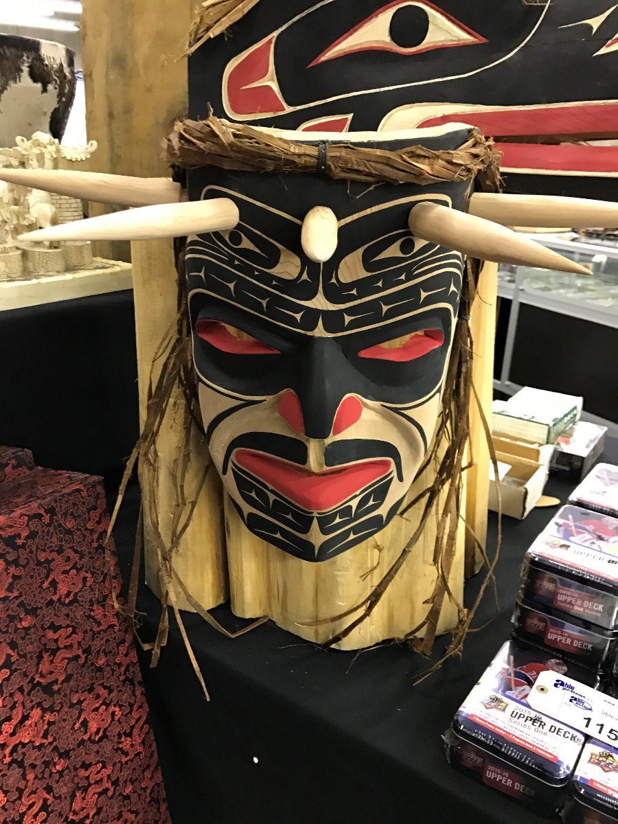 RAVEN SHAMAN MASK BY SAULTEAUX NATION'S EMIL THIBERT MASK MEASURES: 18" TALL X 12" WIDE X 14" DEEP