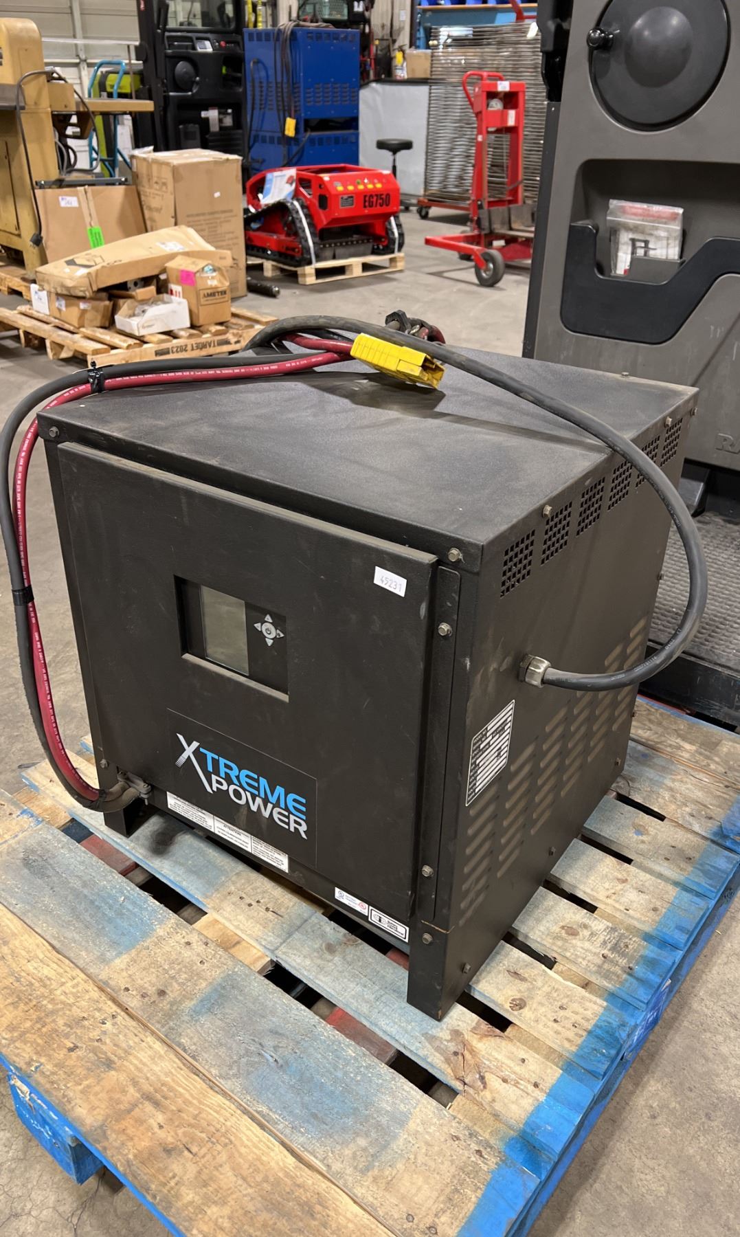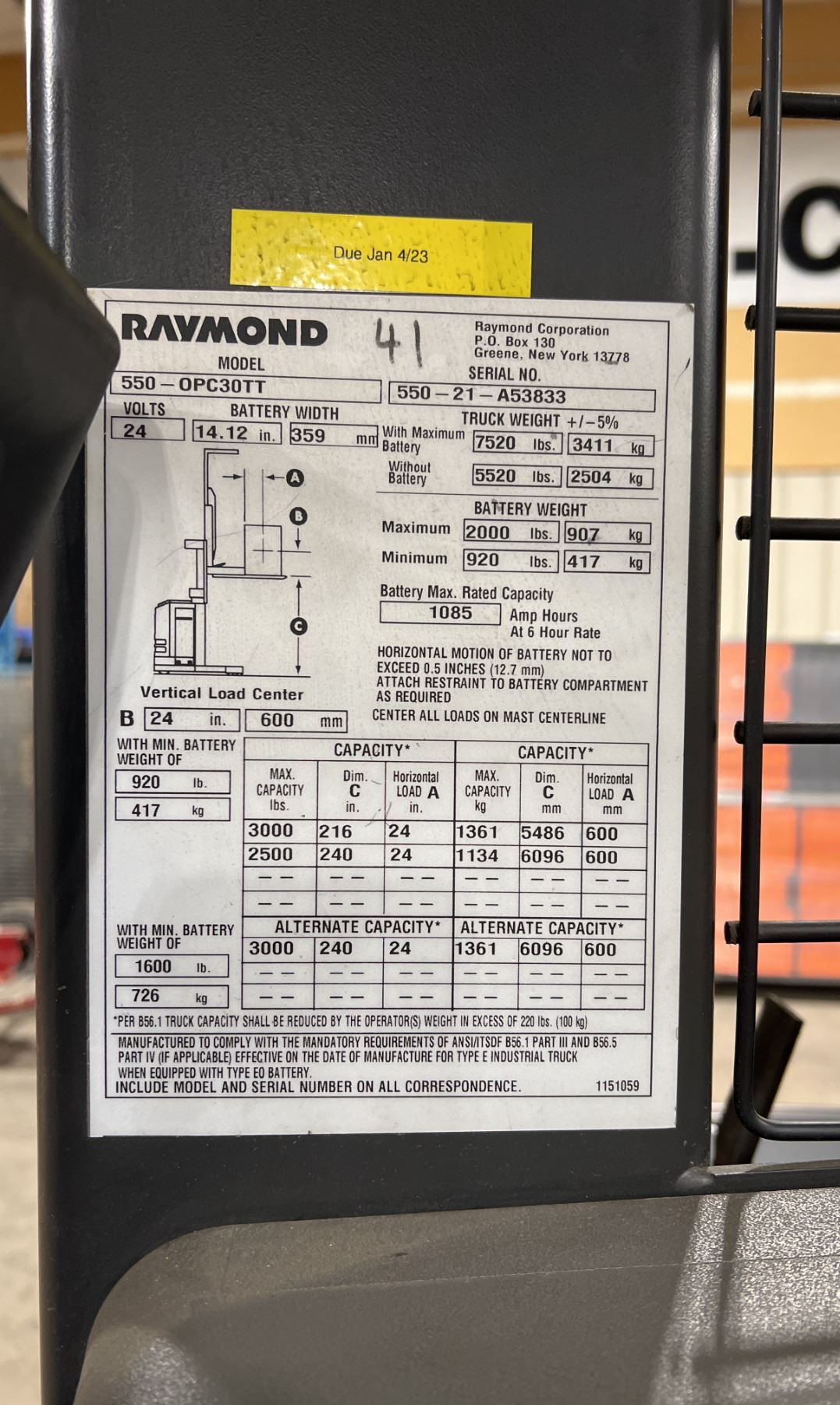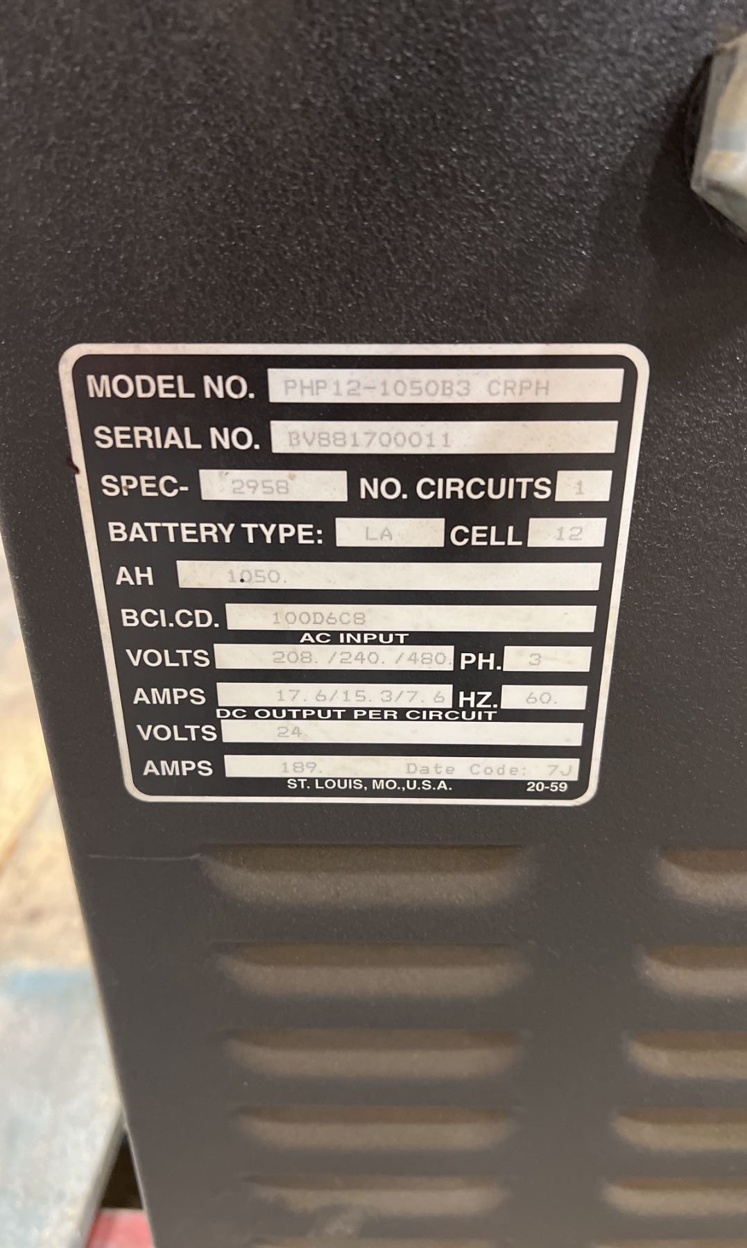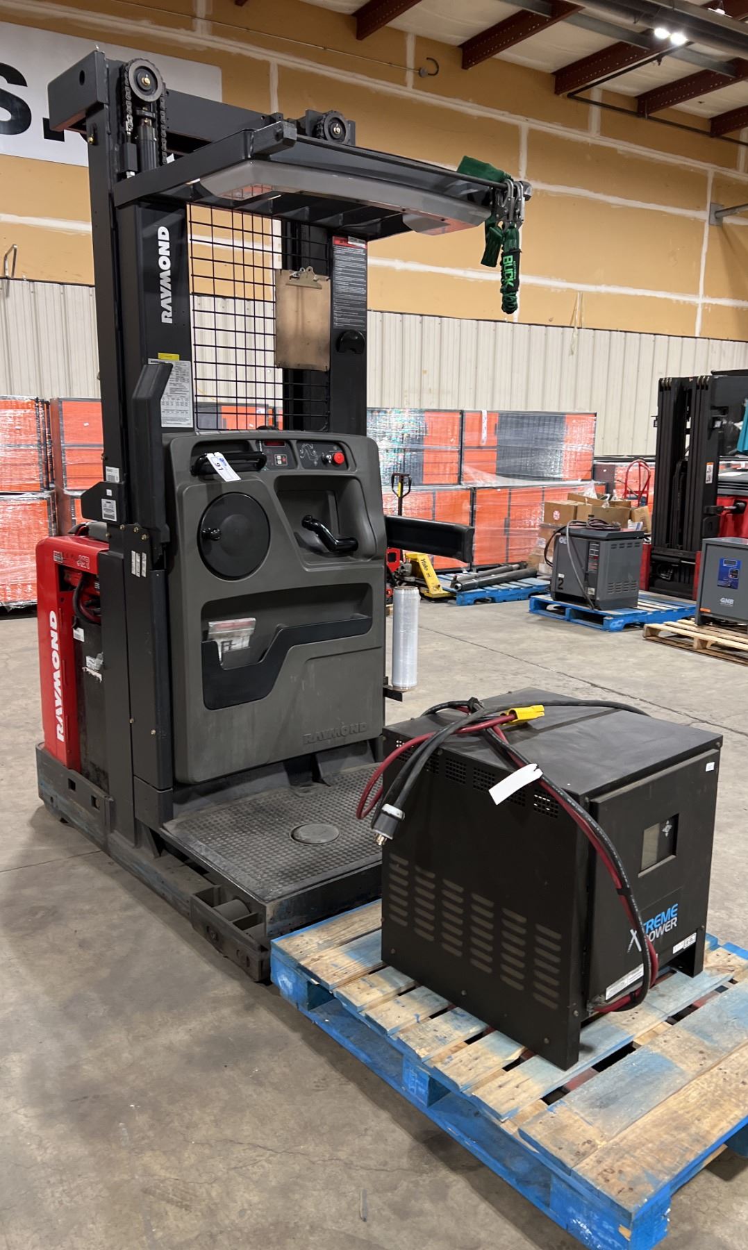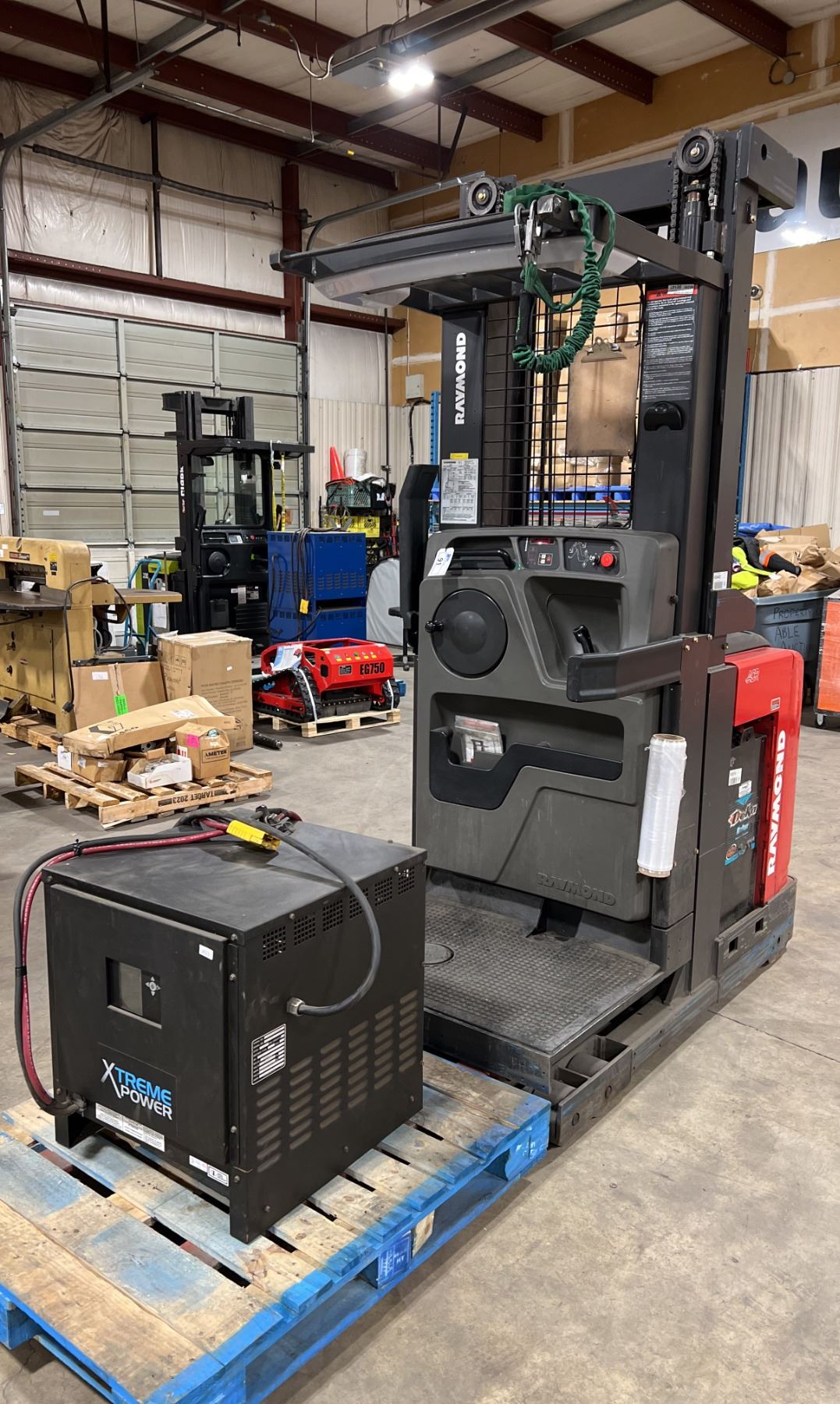 RAYMOND 550-OPC30TT 3 STAGE 3000 LBS CAPACITY 240" MAST HEIGHT 24V ELECTRIC STAND UP ORDER PICKER WITH XTREME POWER PHP12-1050B3 CRPH INDUSTRIAL 3 PHZ BATTERY CHARGER