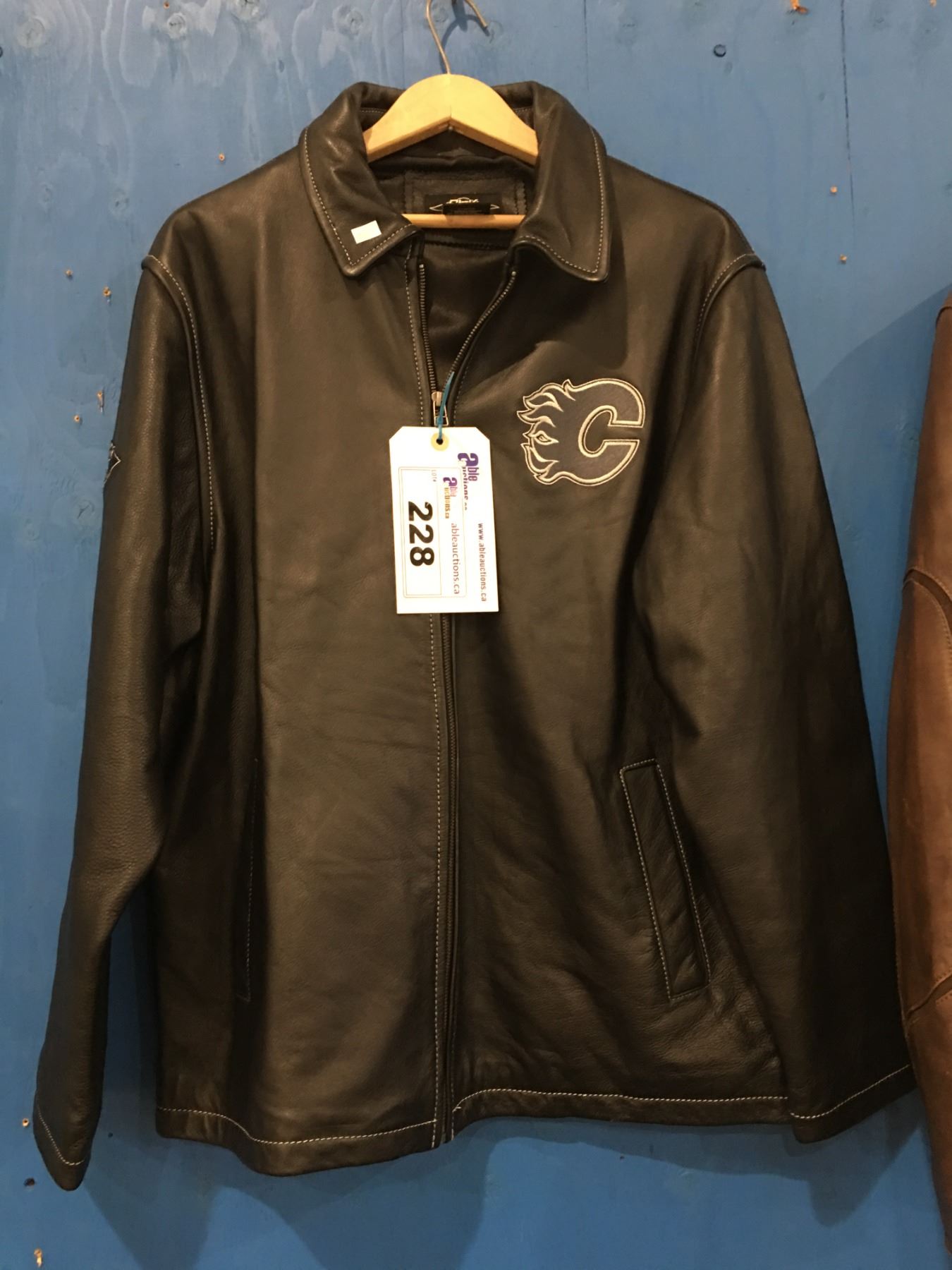 RBK CALGARY FLAMES BLACK LEATHER JACKET (SIZE M)