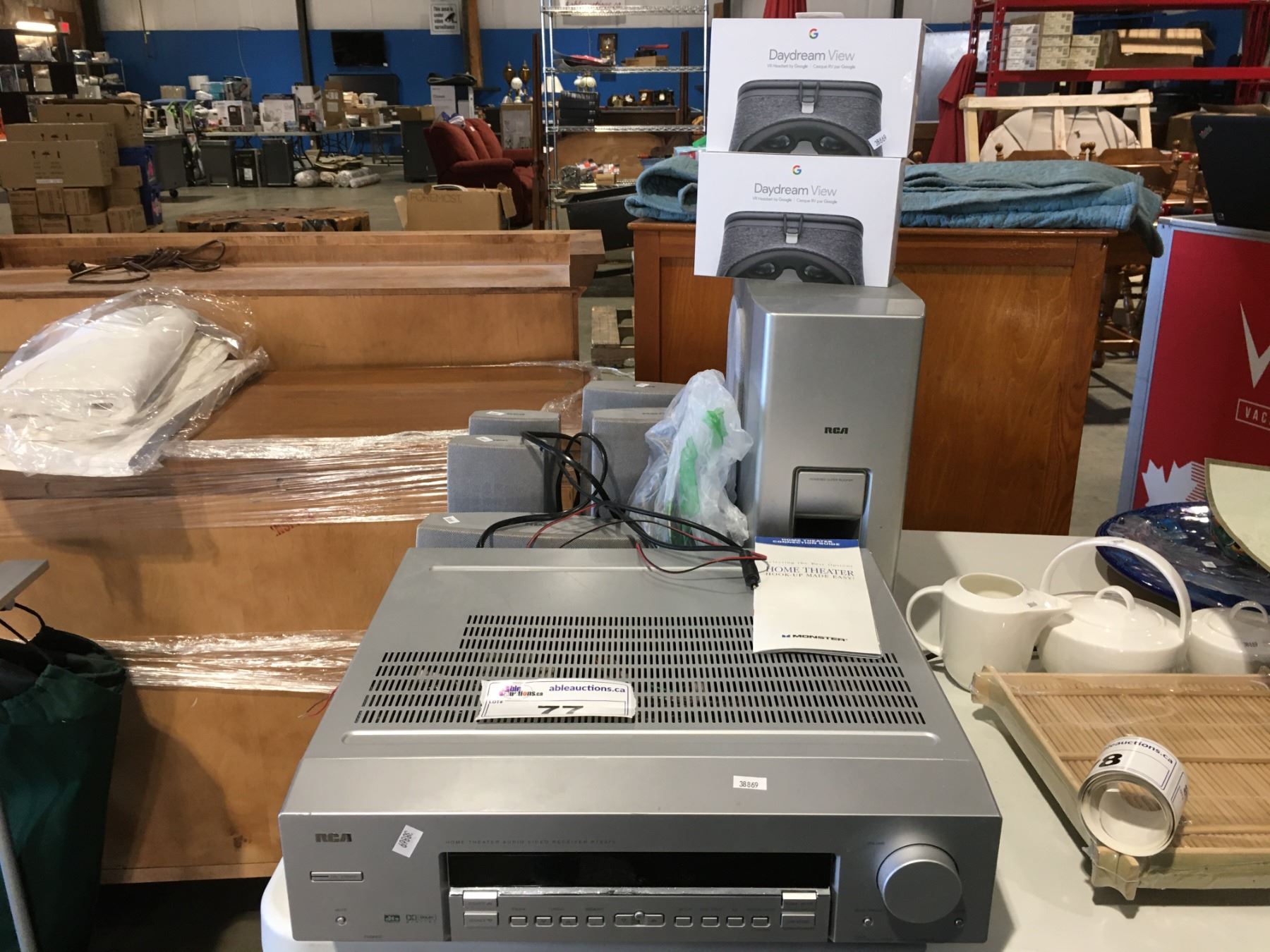 RCA HOME THEATER SYSTEM MODEL RT2370 WITH SUB WOOFER & 5 SPEAKERS & 2 X DAYDREAM VIEW VR HEADSET BY GOOGLE