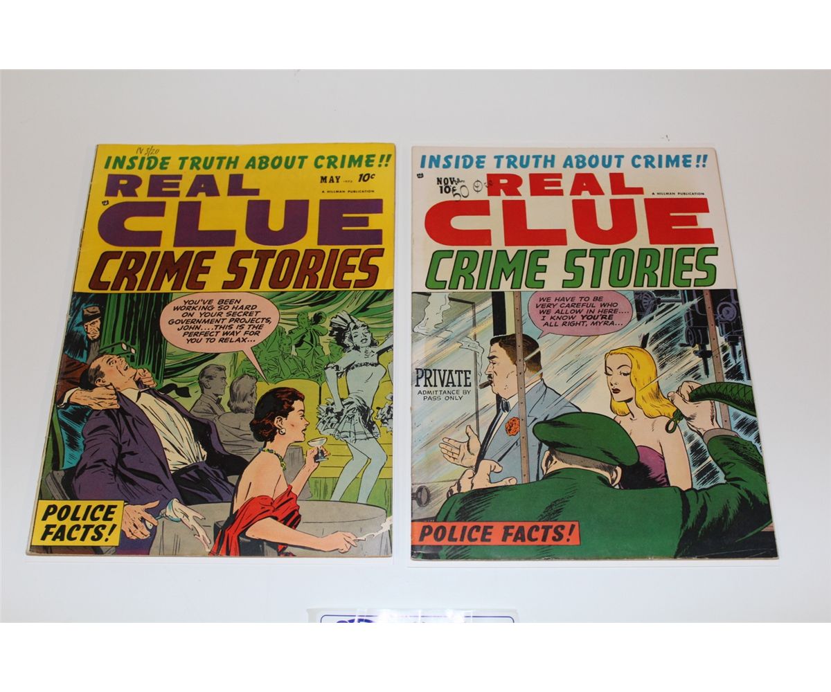 REAL CLUE CRIME STORIES VOL.7 #3 & 9 (1953) LEWD PRECODE CRIME COMICS IN GORGEOUS HIGHER MID GRADE, TIGHT, GLOSSY & SUPPLE. 2 GEMS!