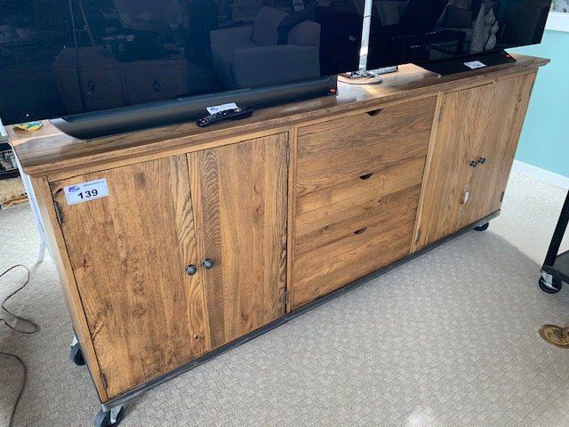 RECLAIMED OAK 4 DOOR, 3 DRAWER MOBILE SECTIONAL CABINET