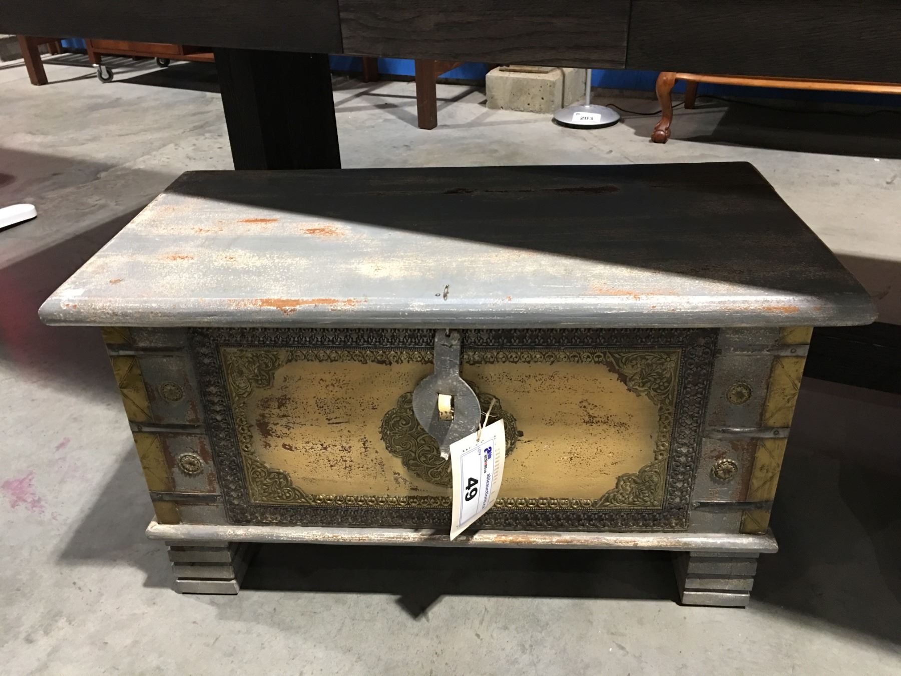RECLAIMED PAINTED WOOD BRASS FITTED STORAGE CHEST/BENCH