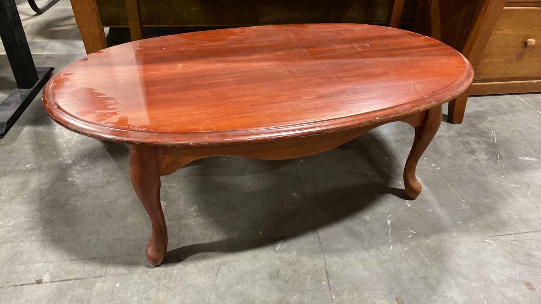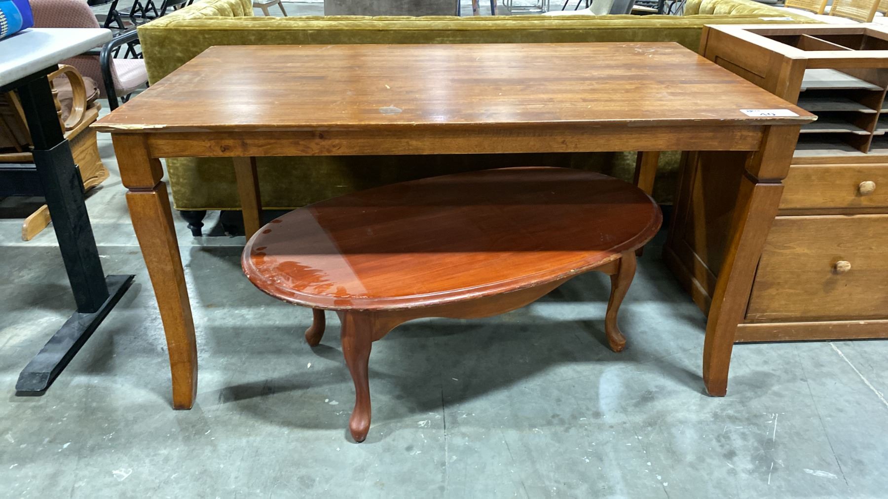 RECTANGULAR WOODEN DINING TABLE - APPROX. 57"W X 33"D X 29"H & A OVAL COFFEE TABLE