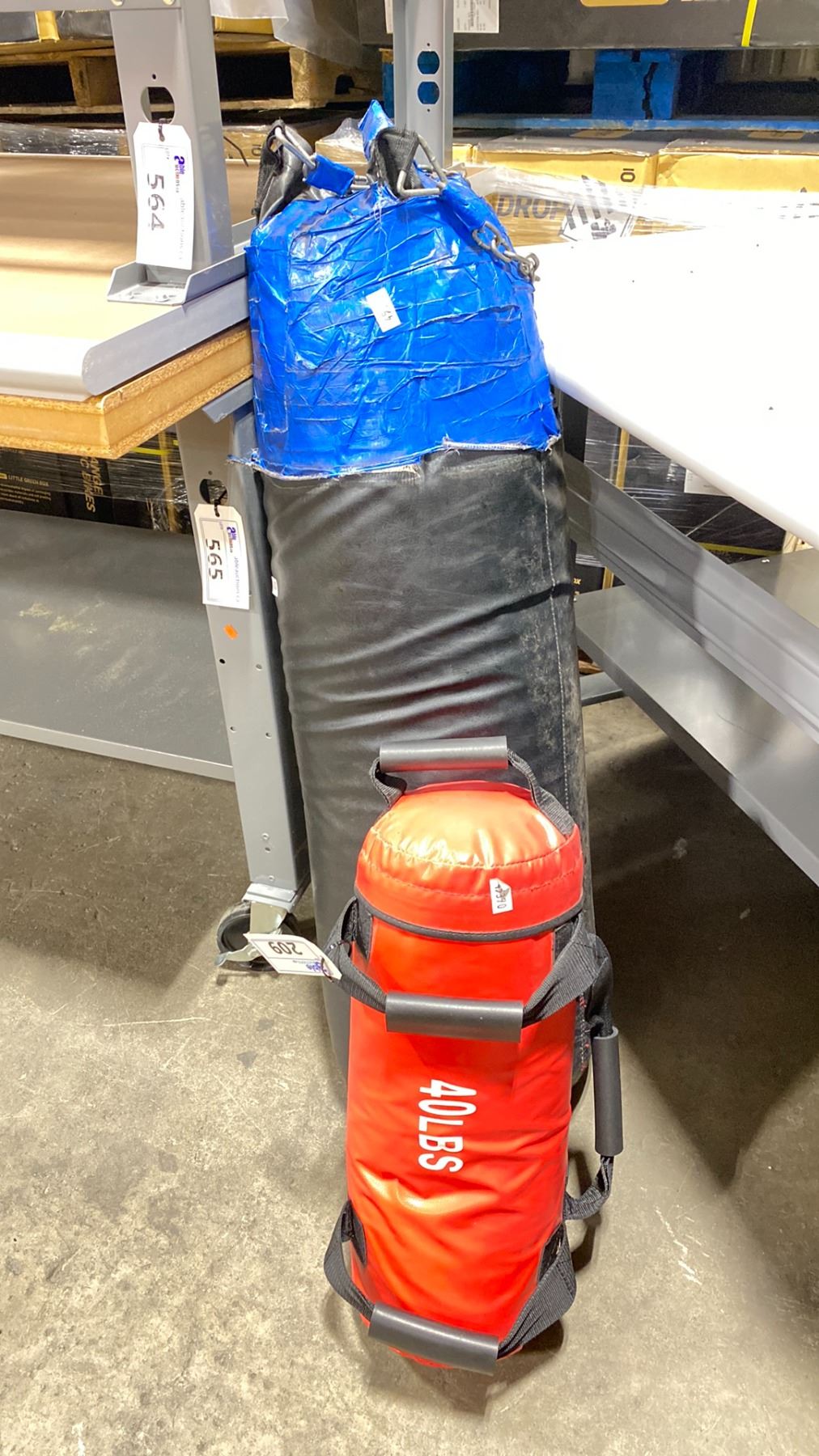 RED 40 LB EXERCISE WEIGHT & BLUE PUNCHING BAG