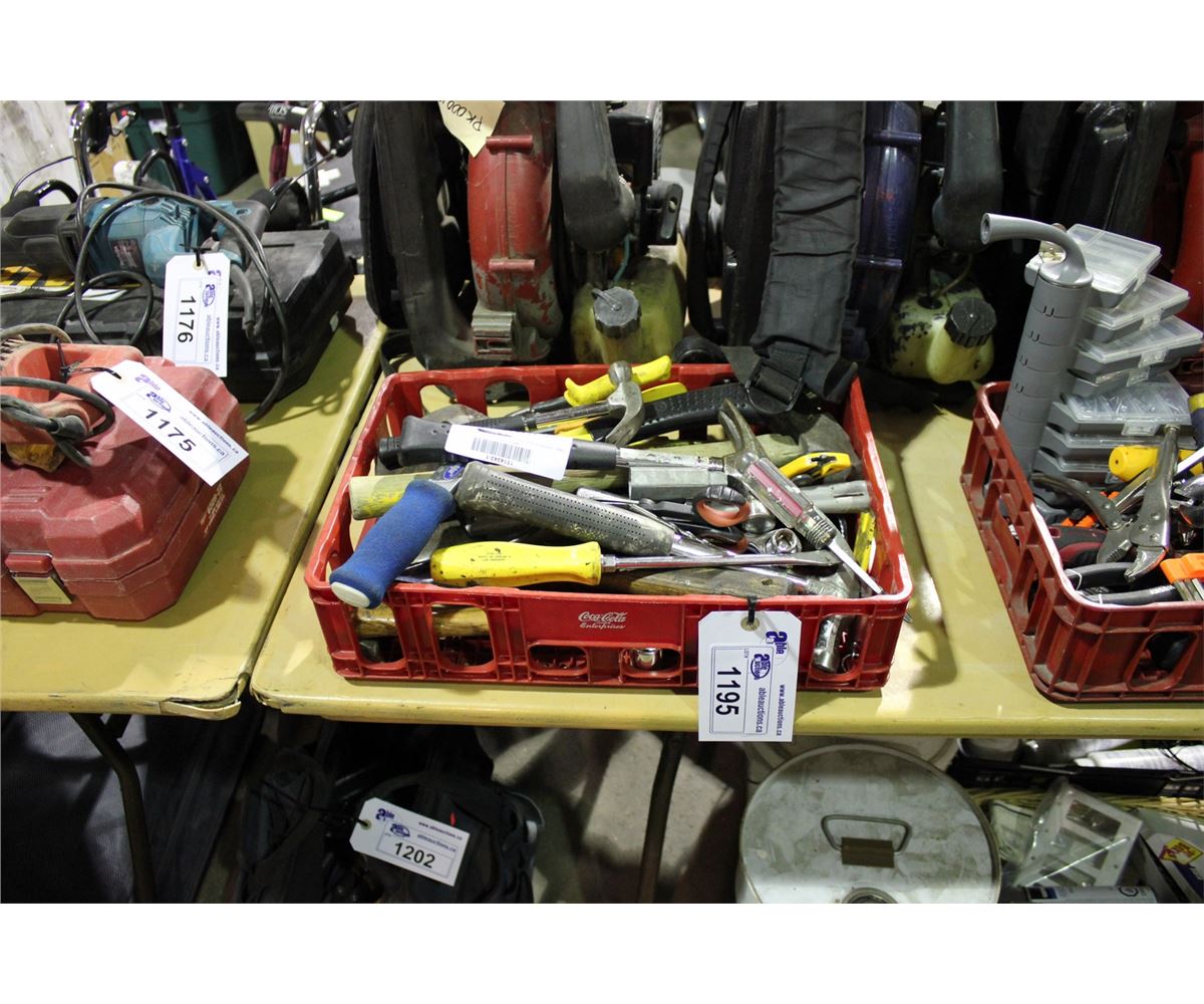 RED BIN OF ASSORTED TOOLS