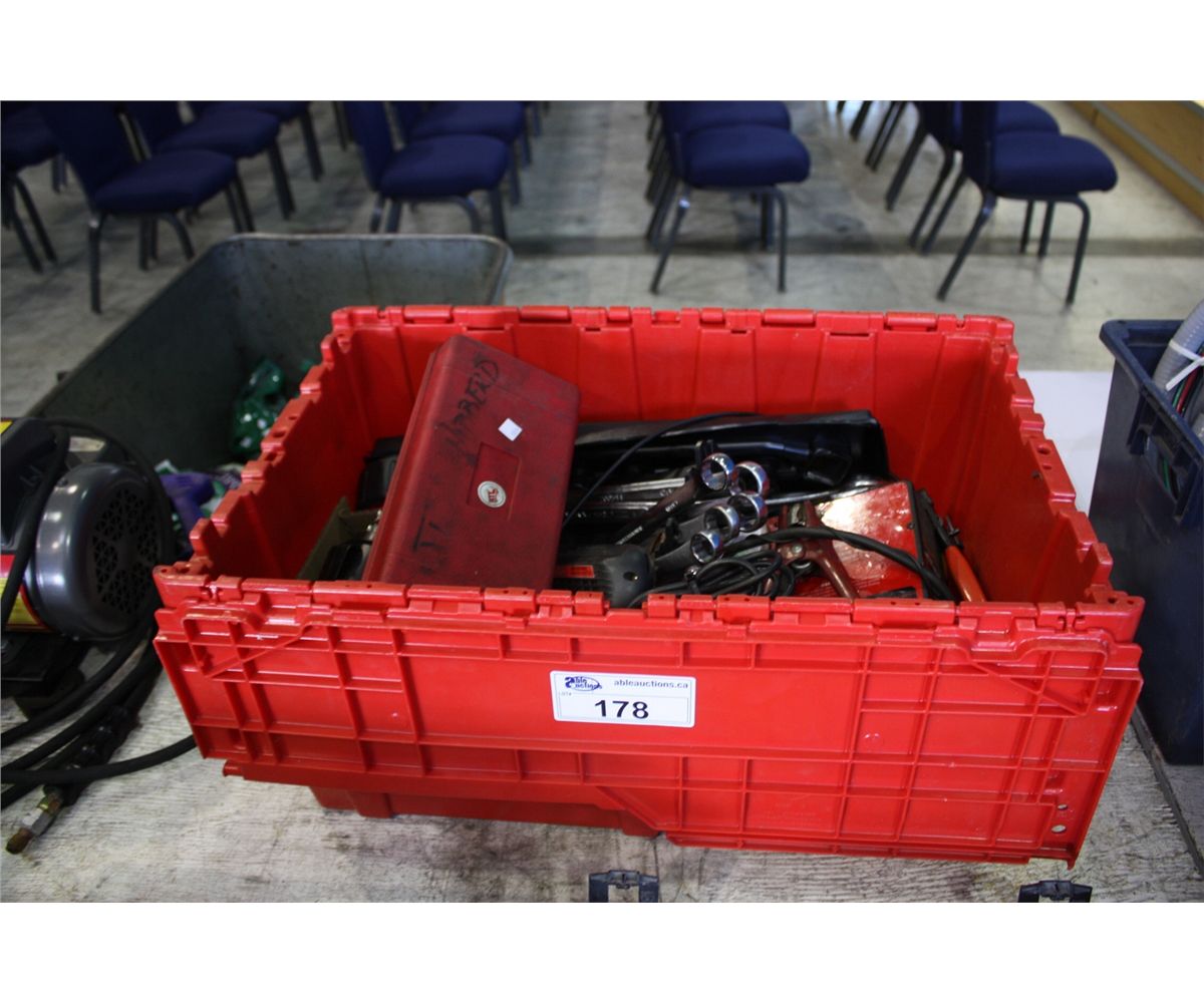 RED BIN OF VARIOUS TOOLS