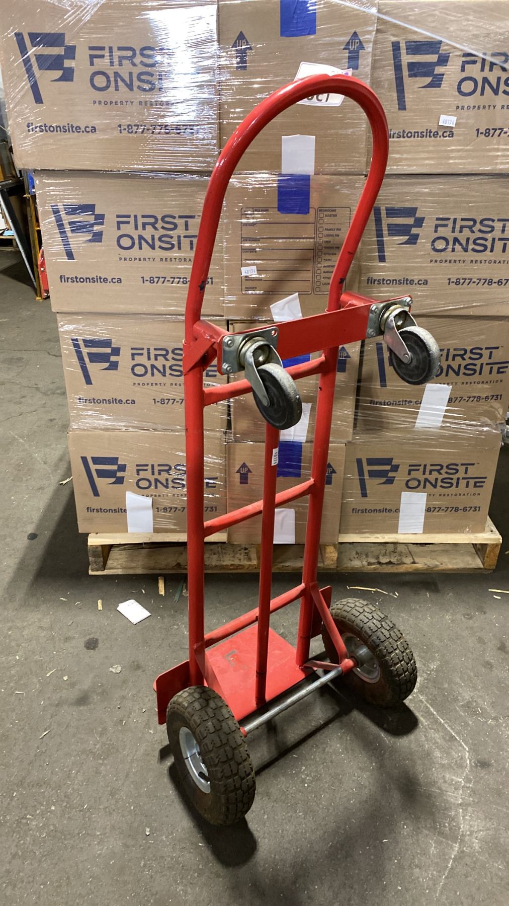 RED CONVERTIBLE HAND TRUCK DOLLY WITH PNEUMATIC TIRES