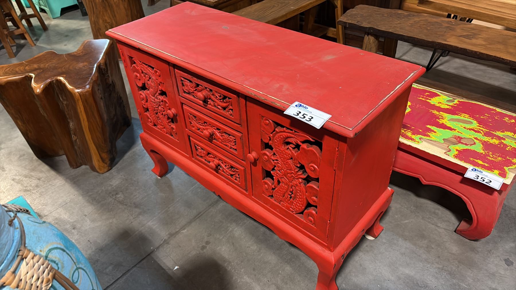 RED EXOTIC WOOD DRESSER 40 X 28"