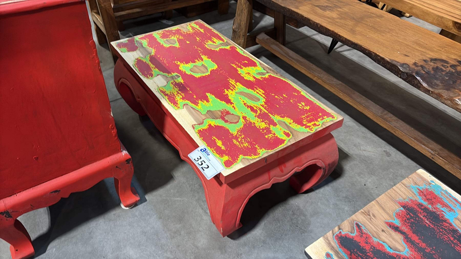 RED EXOTIC WOOD HAND FINISHED COFFEE TABLE 32 X 16"
