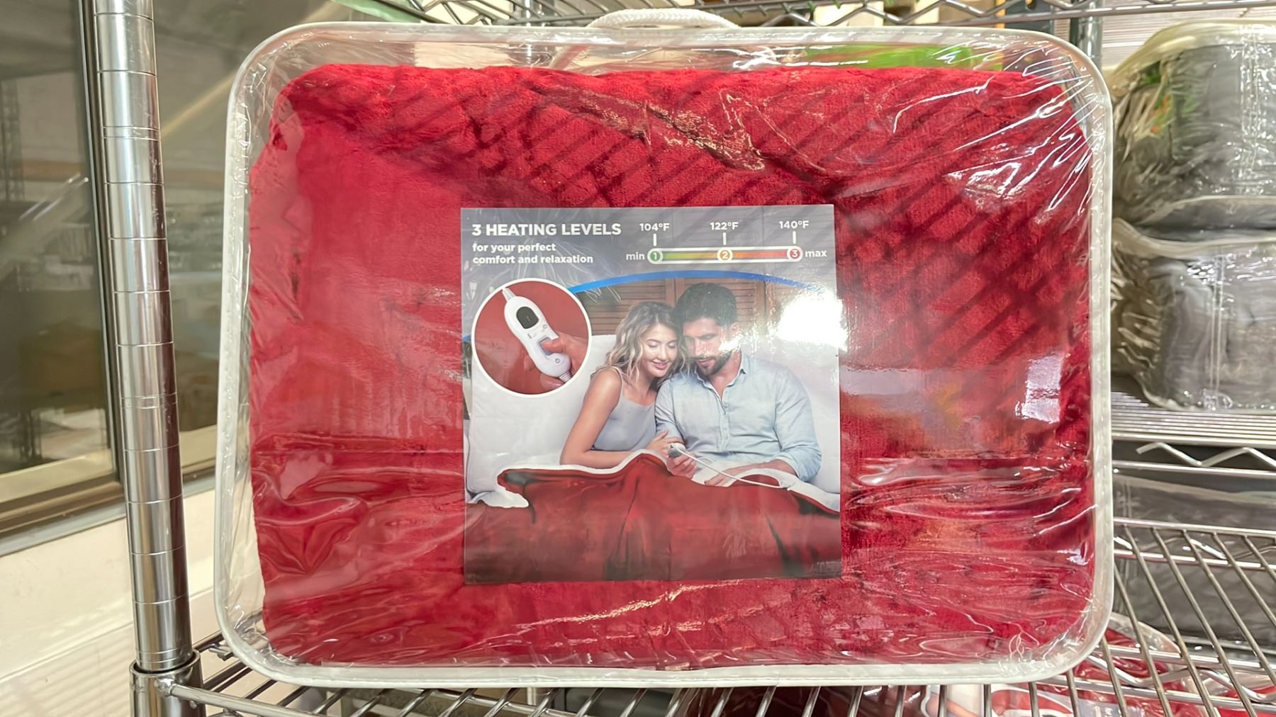RED FLEECE LINED HEATED BLANKET WITH 3 HEATING LEVELS