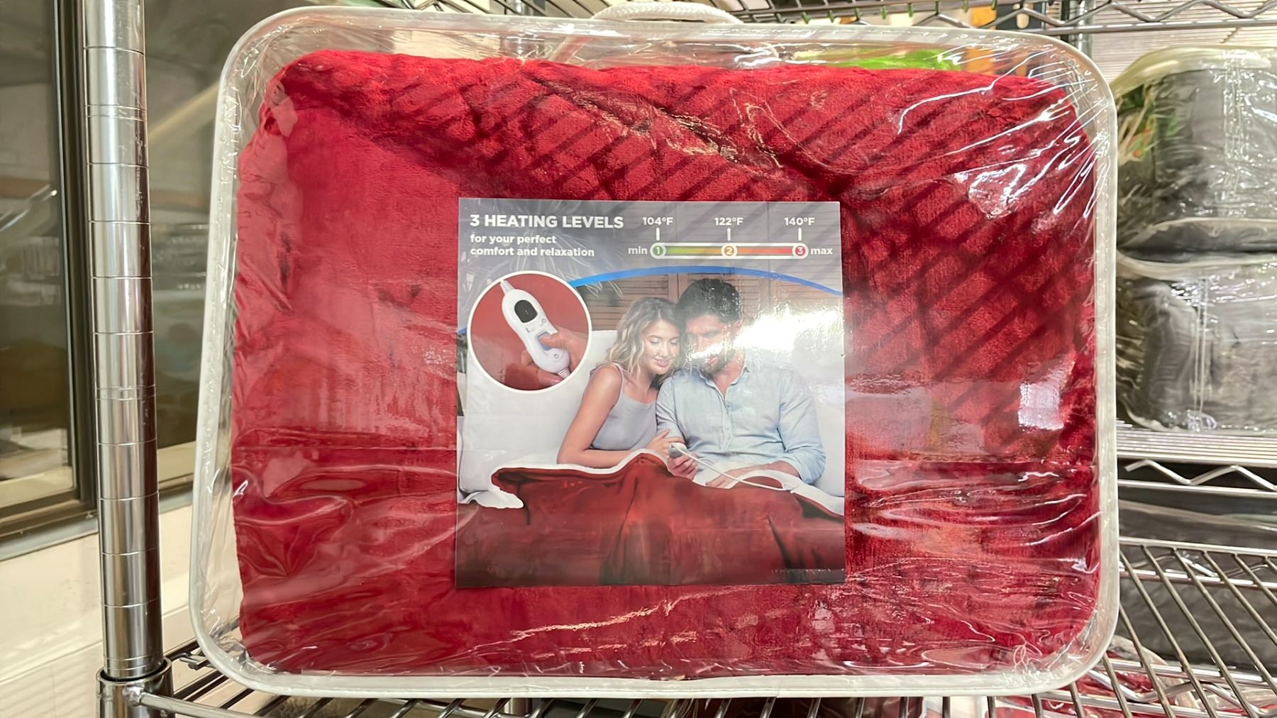 RED FLEECE LINED HEATED BLANKET WITH 3 HEATING LEVELS