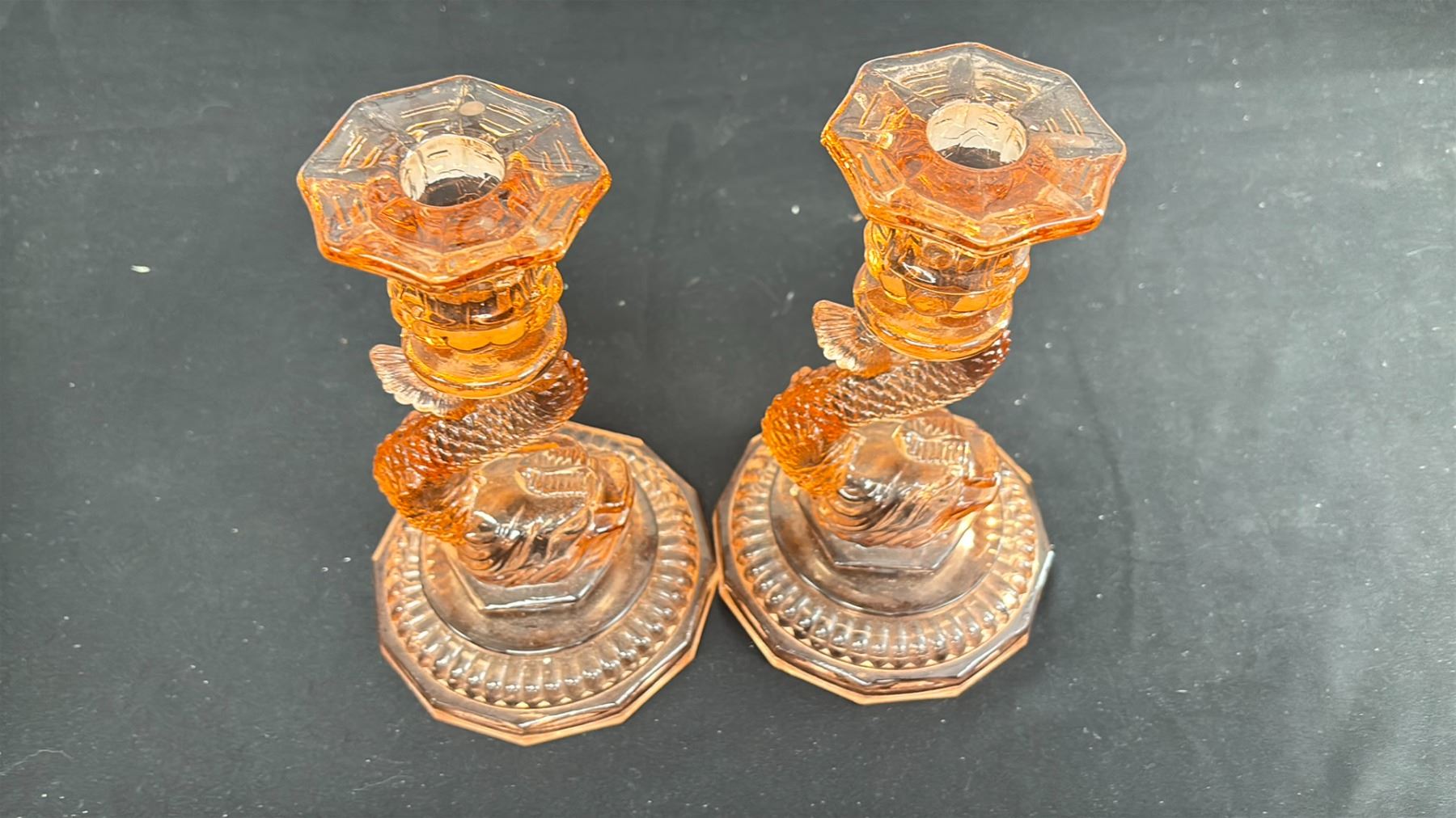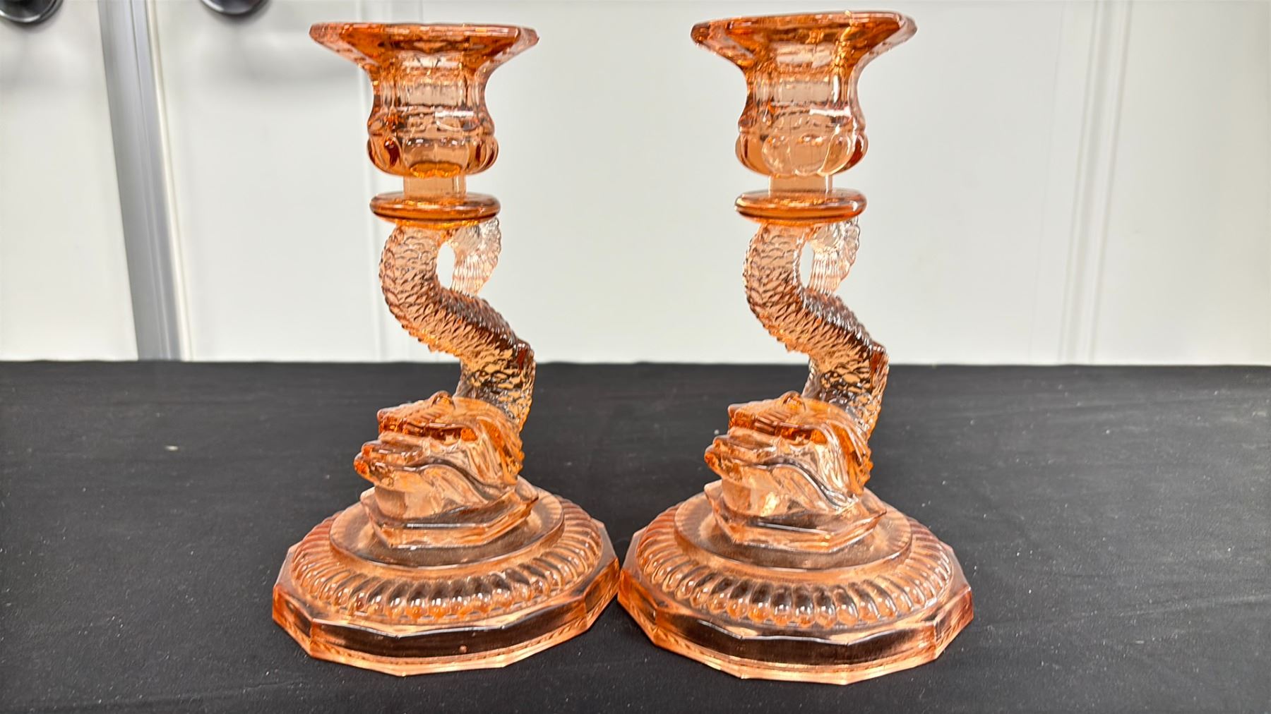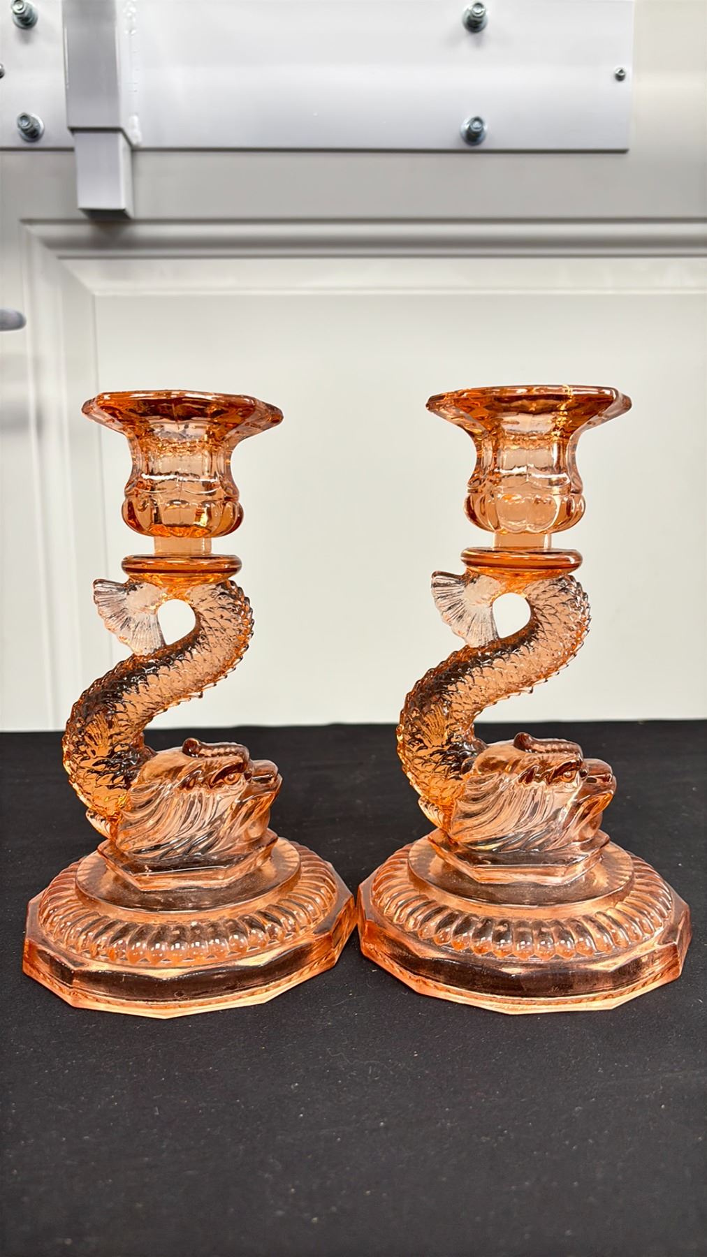 RED GLASS DRAGON FISH CANDLE HOLDER PAIR