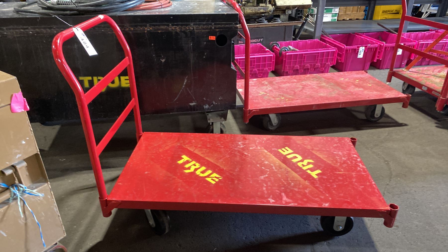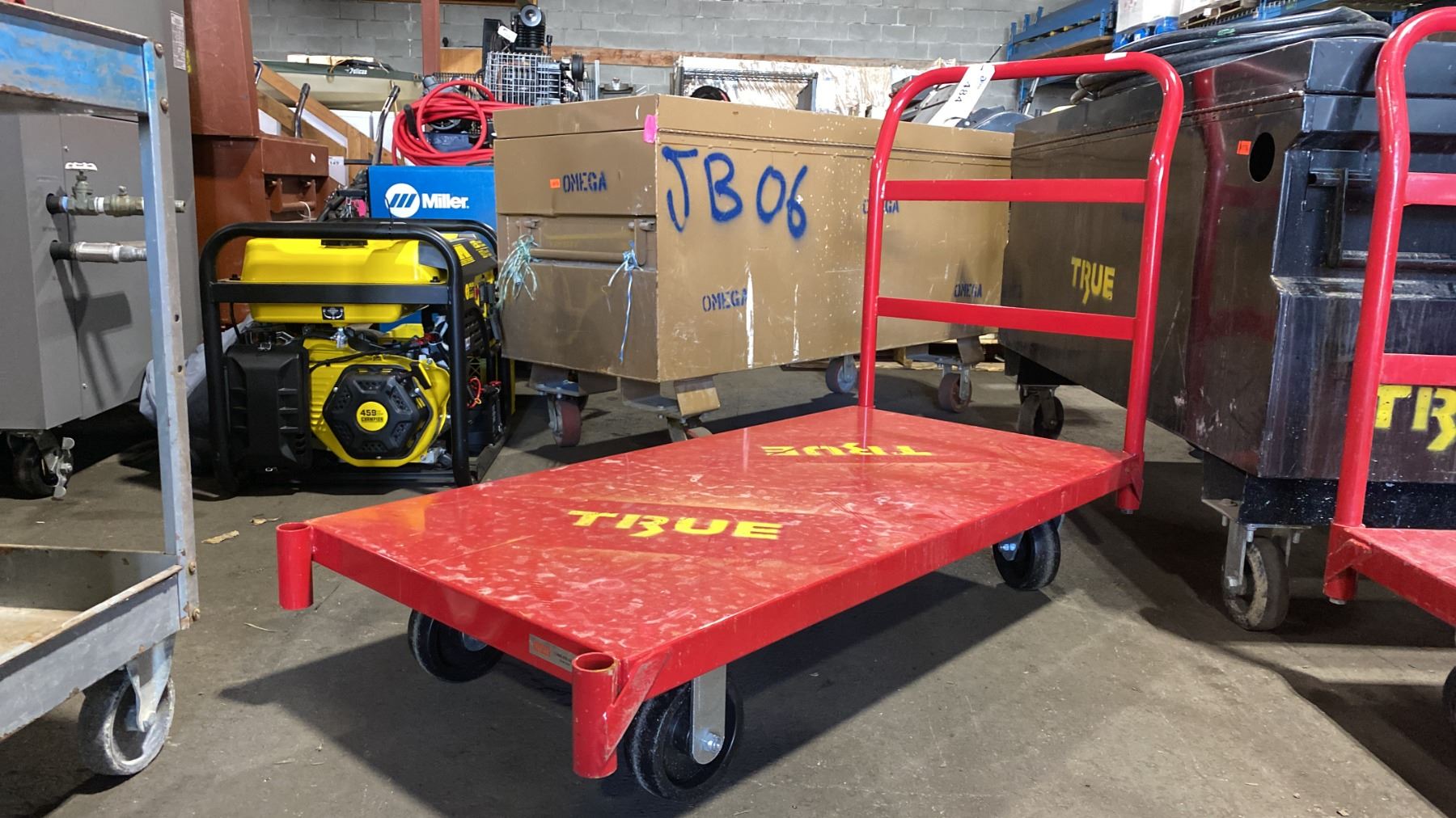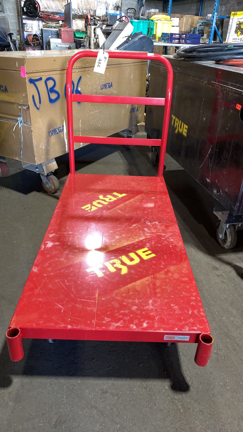 RED METAL MOBILE PLATFORM CART APPROX 48" X 24"