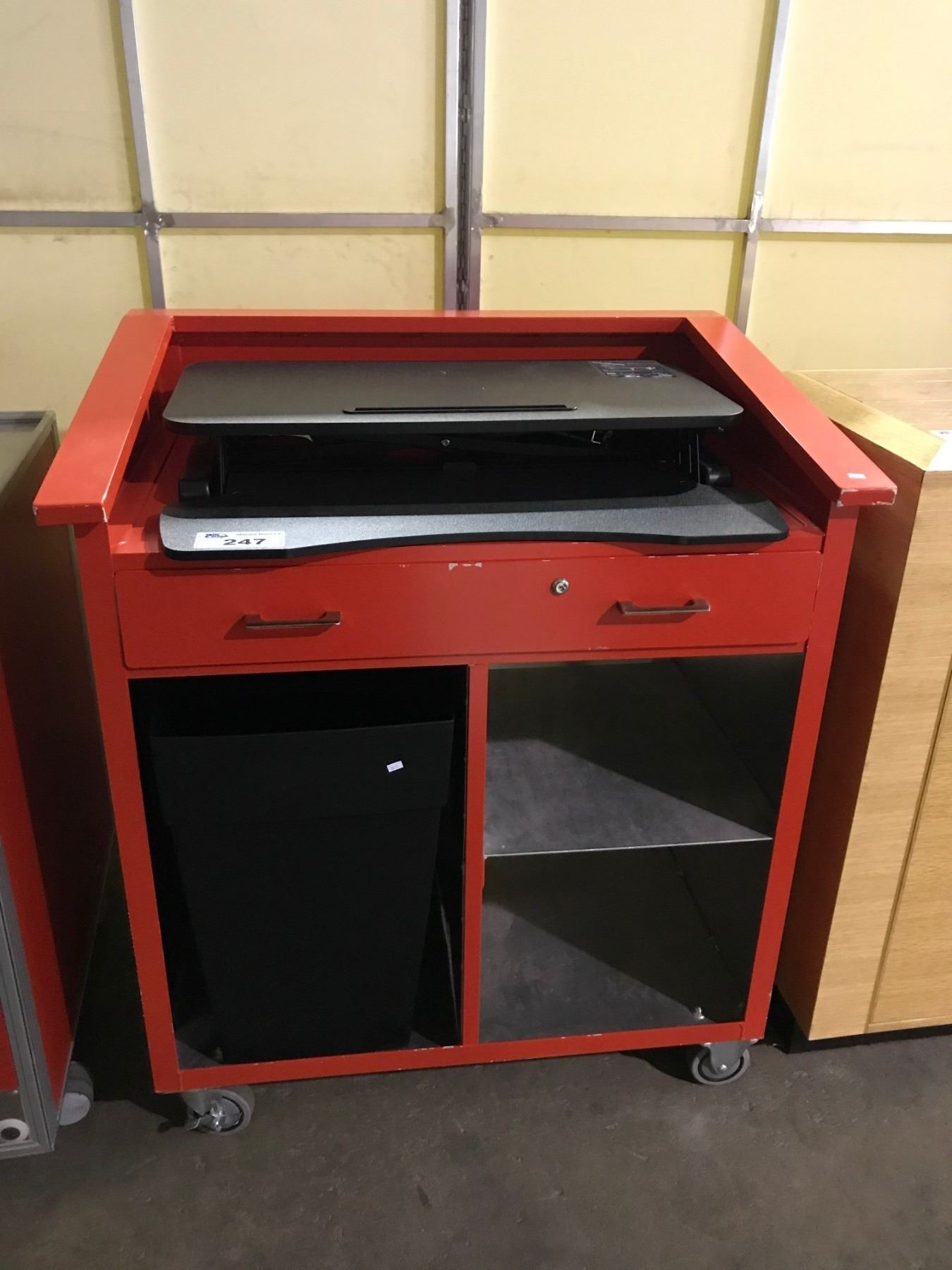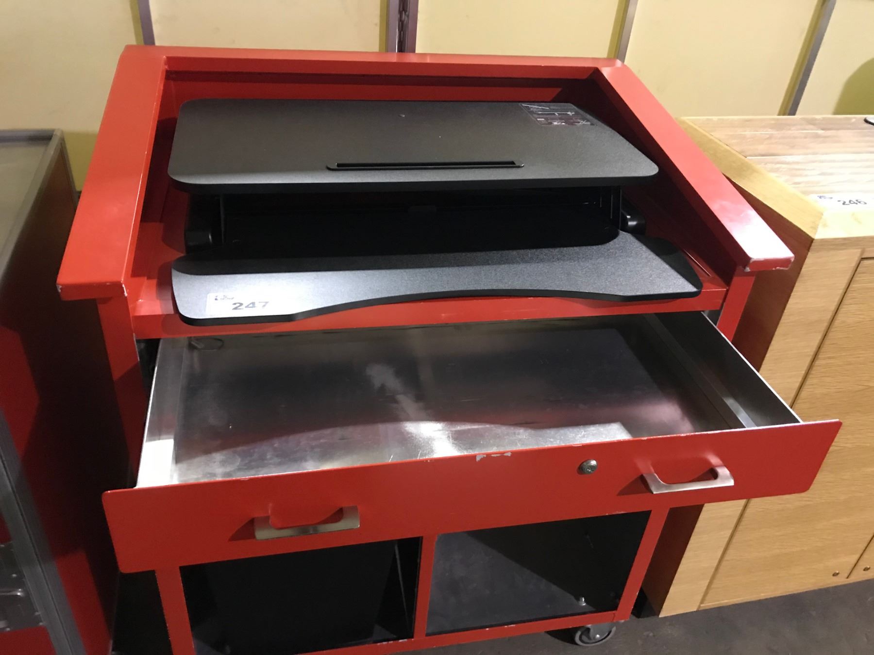 RED METAL MOBILE SINGLE DRAWER RECEIVING CABINET DIMENSIONS: 29"D X 40"W X 46"H