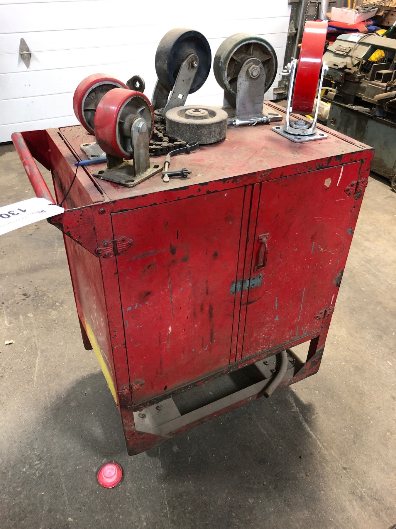 RED MOBILE PARTS CABINET WITH HEAVY DUTY CASTERS