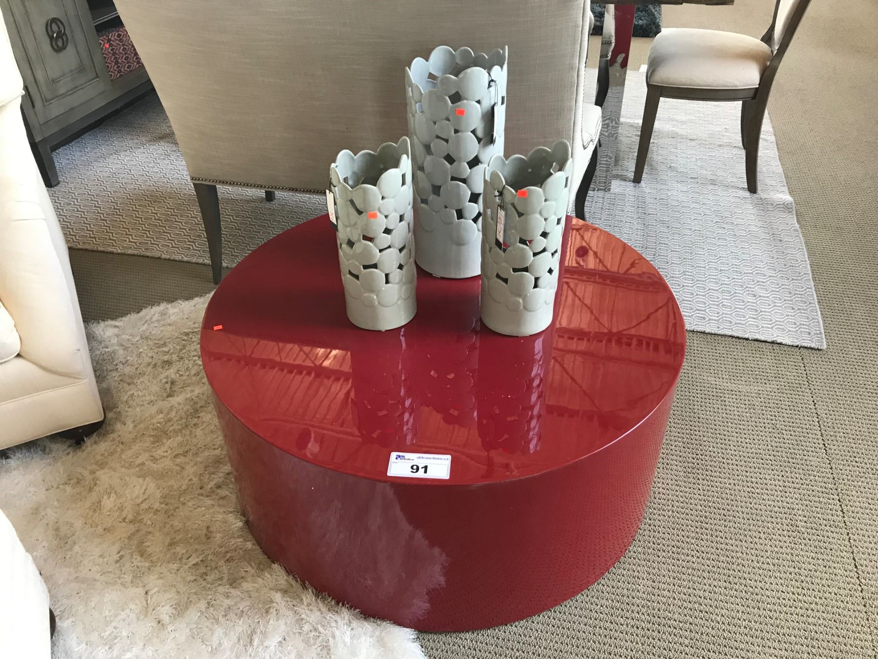 RED MODERN CIRCULAR MOBILE COCKTAIL TABLE & DECOR