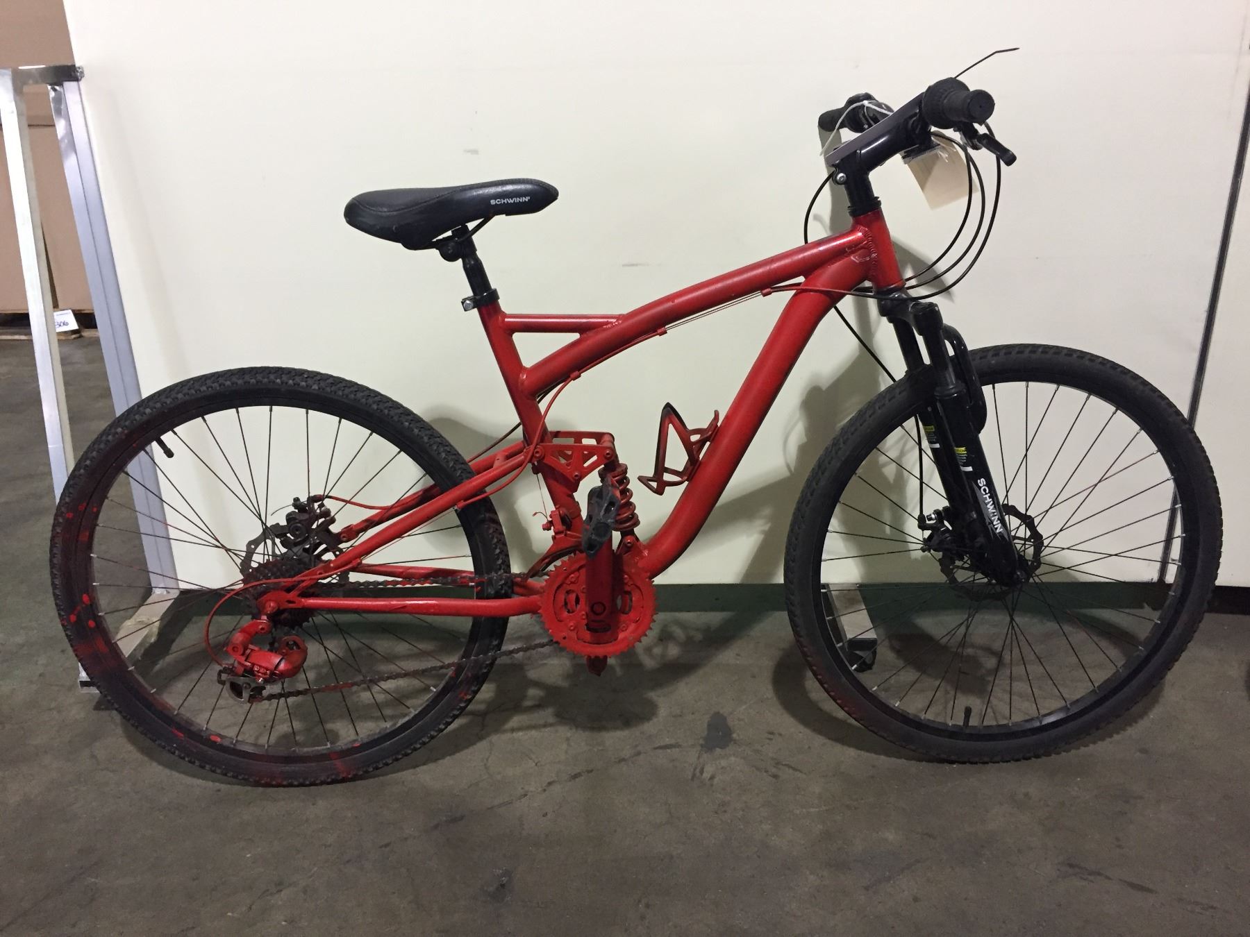 RED NO NAME 21-SPEED FULL SUSPENSION MOUNTAIN BIKE W/ FULL DISK BRAKES