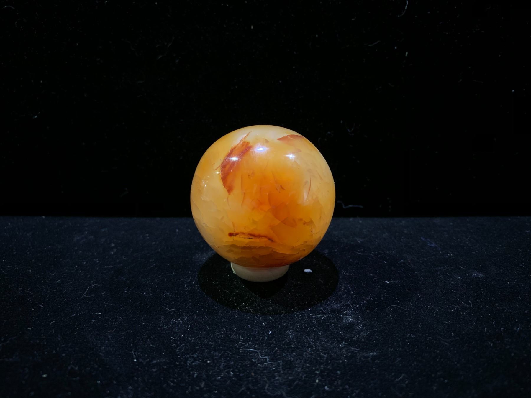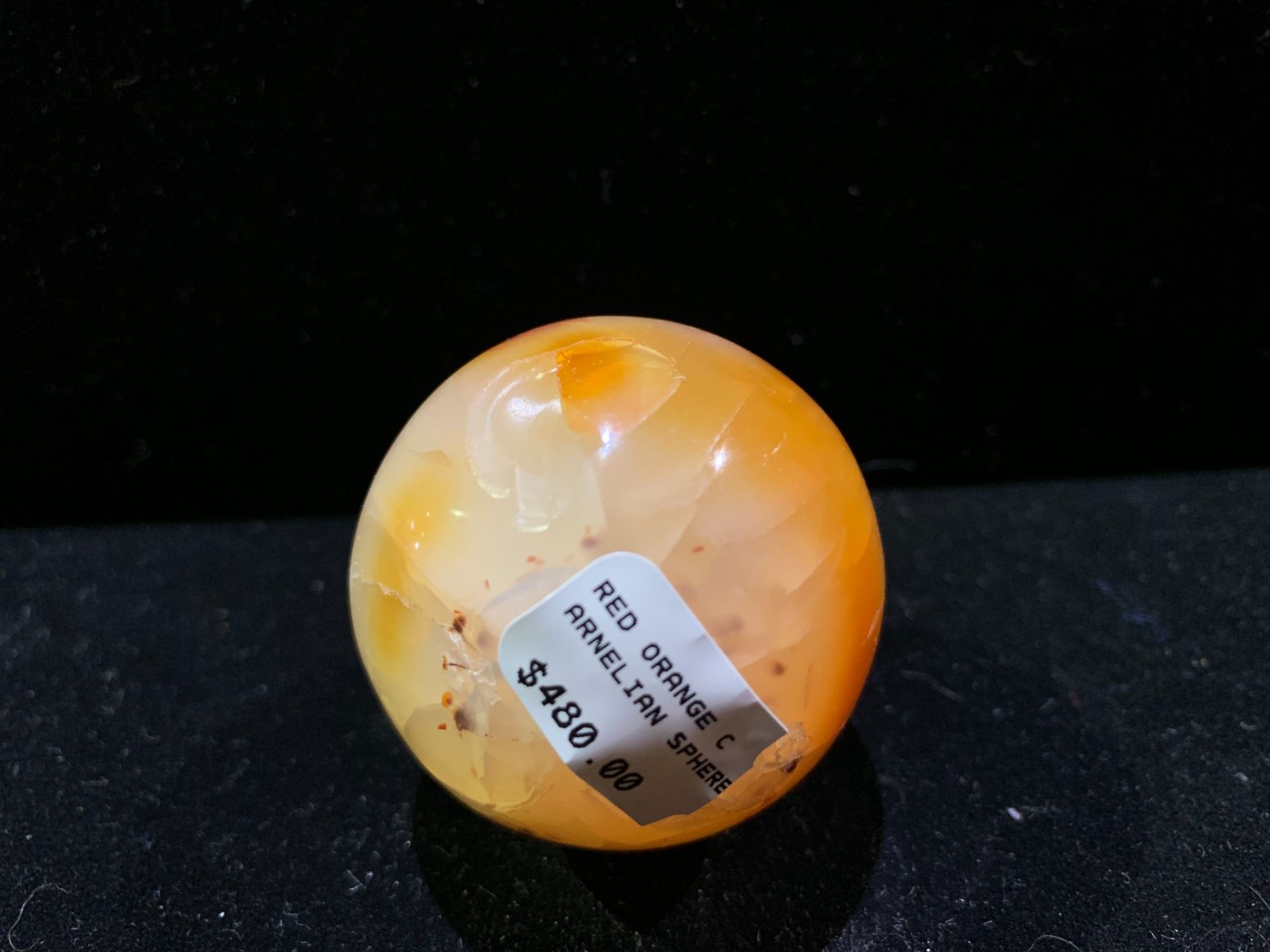 RED ORANGE CARNELIAN SPHERE RETAIL $480 (SMALL CHIP)