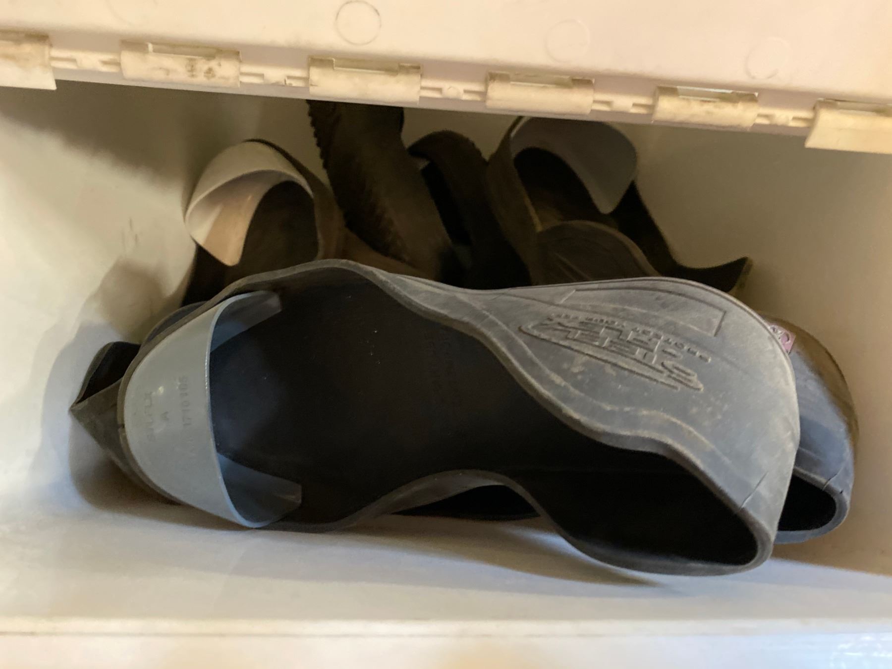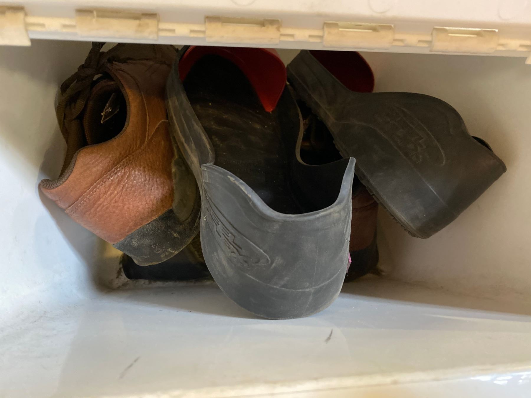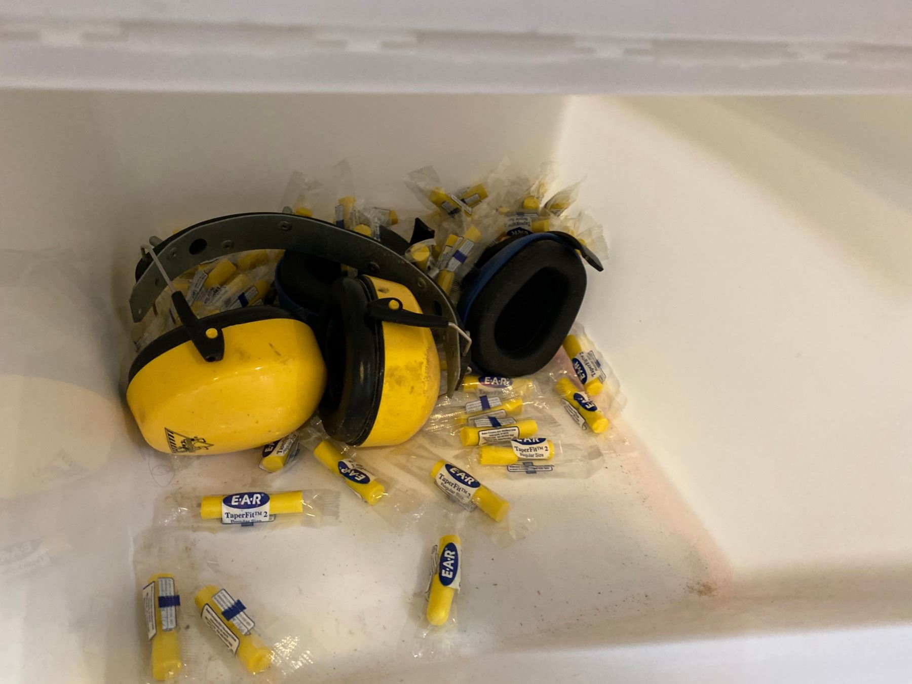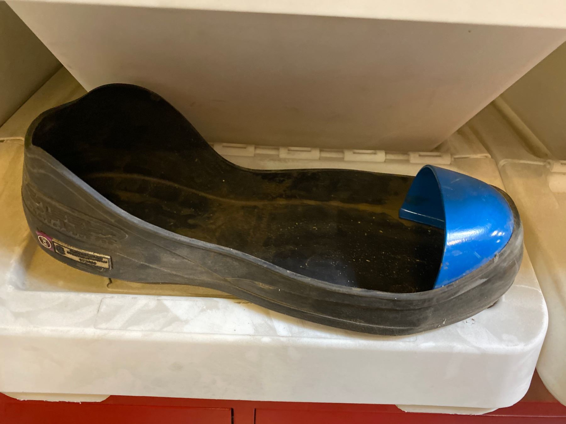 RED SAFETY SUPPLY CABINET AND 6 BINS OF PROTECTIVE EQUIPMENT