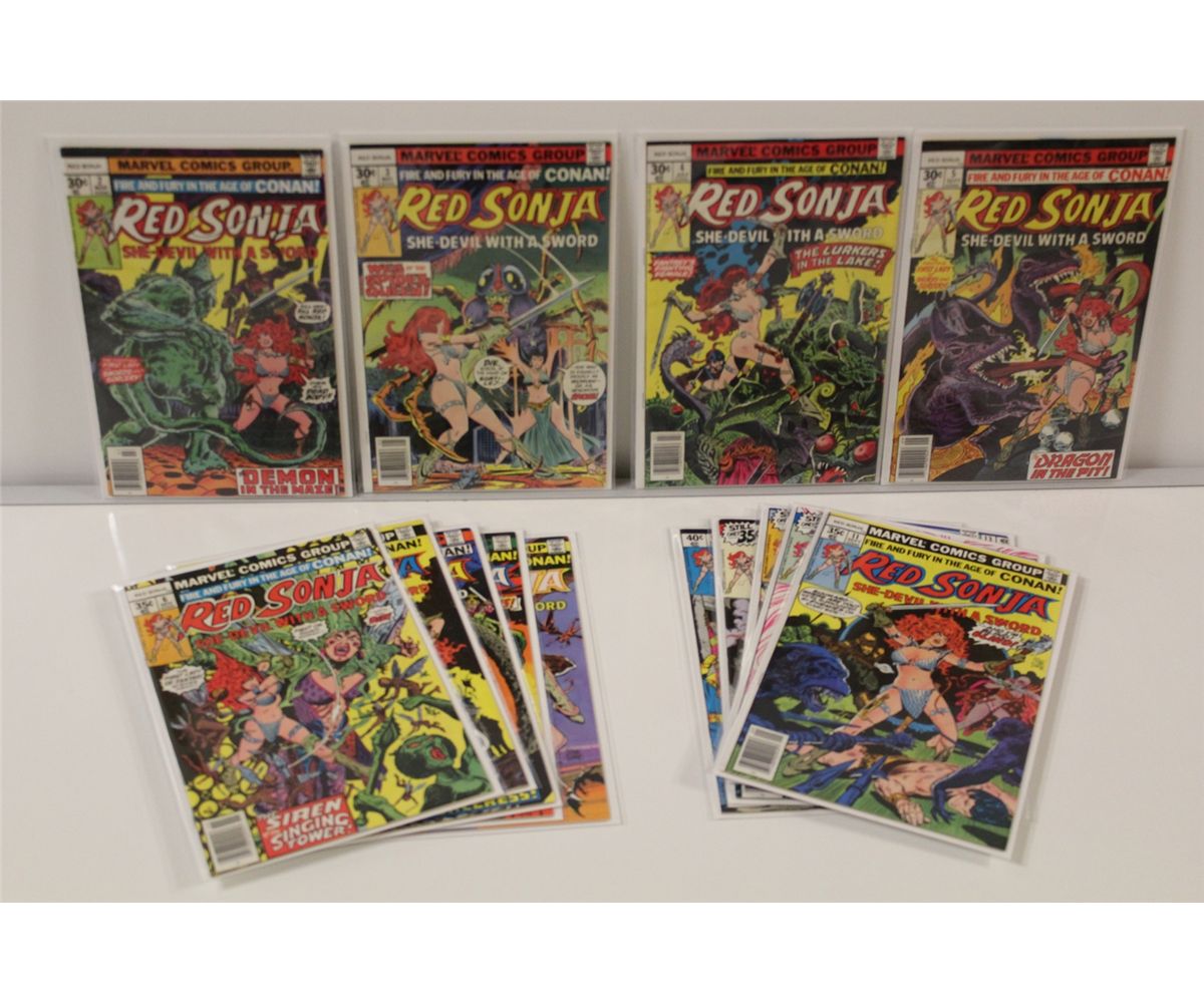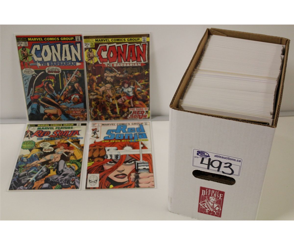 RED SONJA LOT OF 10 SETS & ONE-SHOTS + KING CONAN #1-53 (1973-89) EXTENSIVE FANTASY LOT OF THE 2 INFAMOUS R.E.H. CHARACTERS! INCLUDES CONAN THE BARBARIAN #23 & 24 - 1ST 2 APP RED SONJA (1973), MARVEL FEATURE #1-5 1975), RED SONJA #2-15 (1977), SERIES 2 SERIES 3 - #1-13 (-#10) (1983) + 2 RS RS MINI SERIES & 4 ONE-SHOTS & KING CONAN # 1-53 (MINUS 9 ISSUES) 90 BOOKS TOTAL, HIGH GRADE AVERAGE, MOST NM RANGE, CHOICE LOT! 2013 OVERSTREET TOP END GUIDE VALUE OF OVER $750