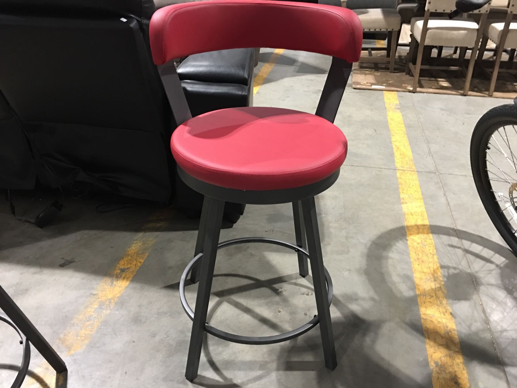 RED UPHOLSTERED SWIVEL STOOL WITH METAL BASE