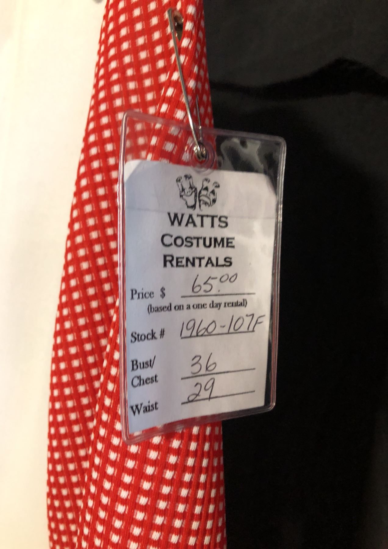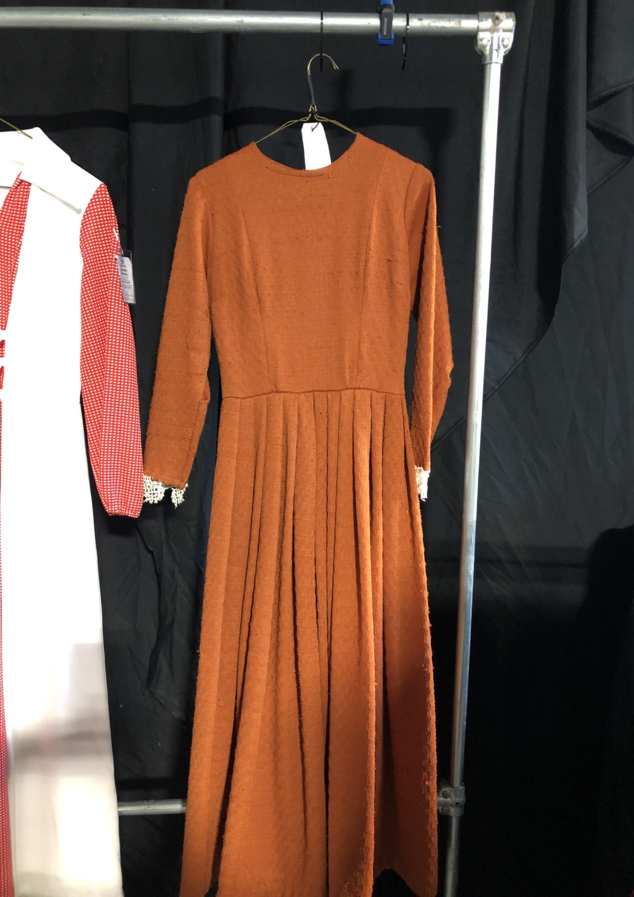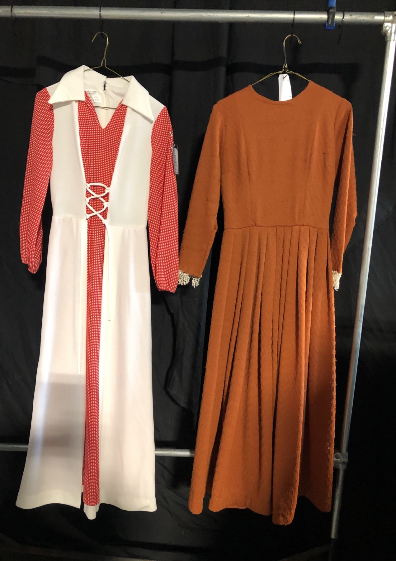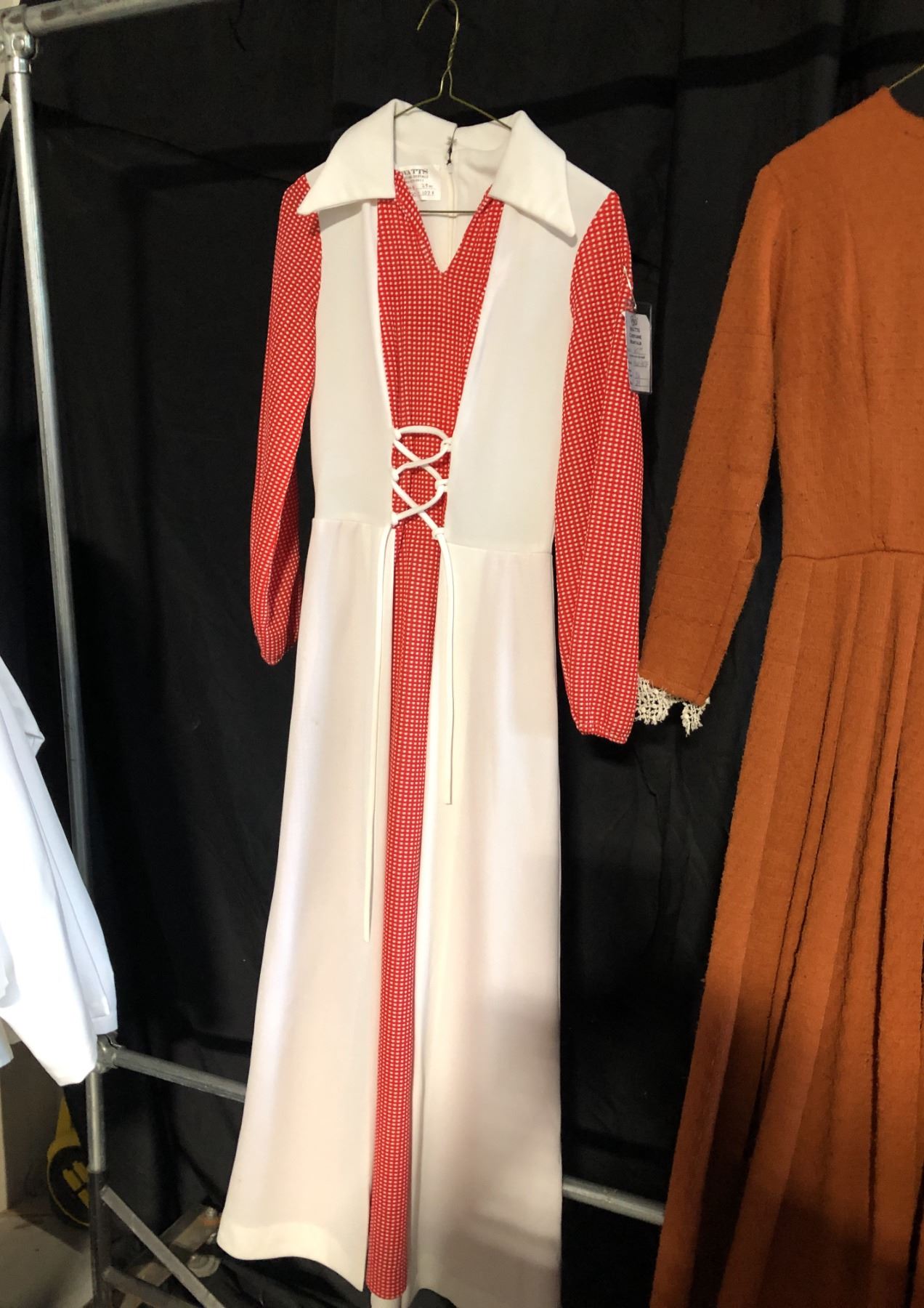RED/WHITE 1910'S COSTUME, AND BROWN VINTAGE DRESS, DAILY RENTAL $65.00