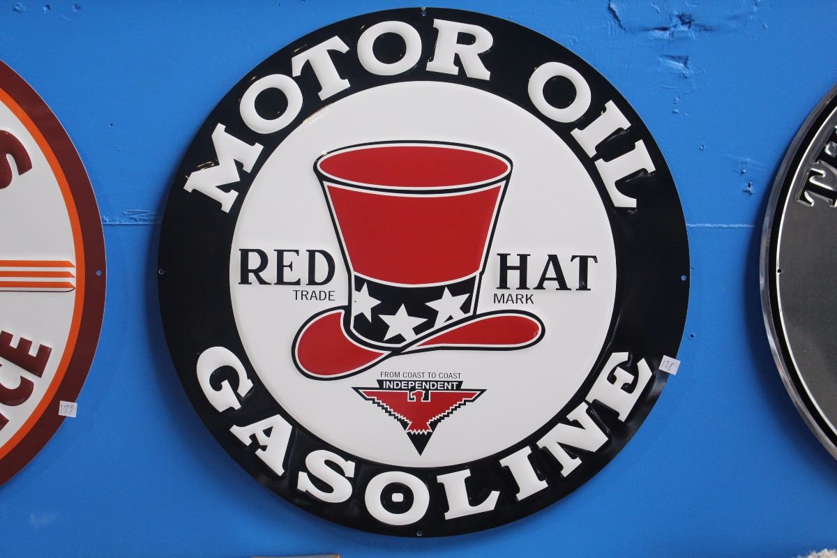 REDHAT MOTOR OIL GASOLINE TIN SIGN