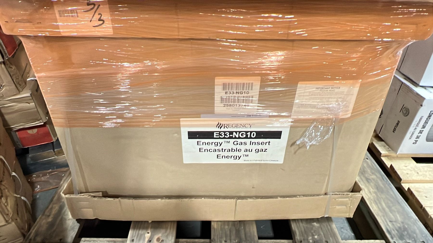 REGENCY E33-NG10 GAS INSERT FIREPLACE WITH SURROUND & CHIMNEY PIPING *IN BOX* MADE IN CANADA. $3,500 RETAIL