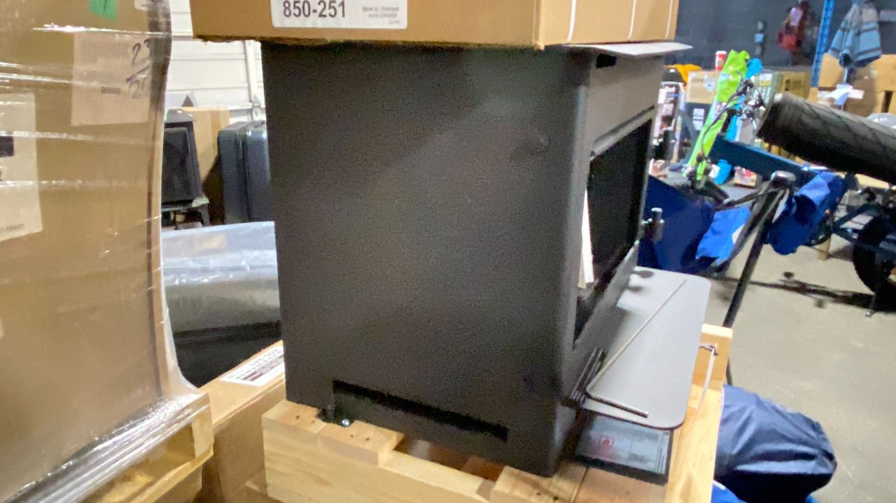 REGENCY I1500S CLASSIC BLACK CAST IRON CASCADES WOOD INSERT FIREPLACE WITH STONE INLAY, DOOR, BLOWER & OFFSET FUEL ADAPTER