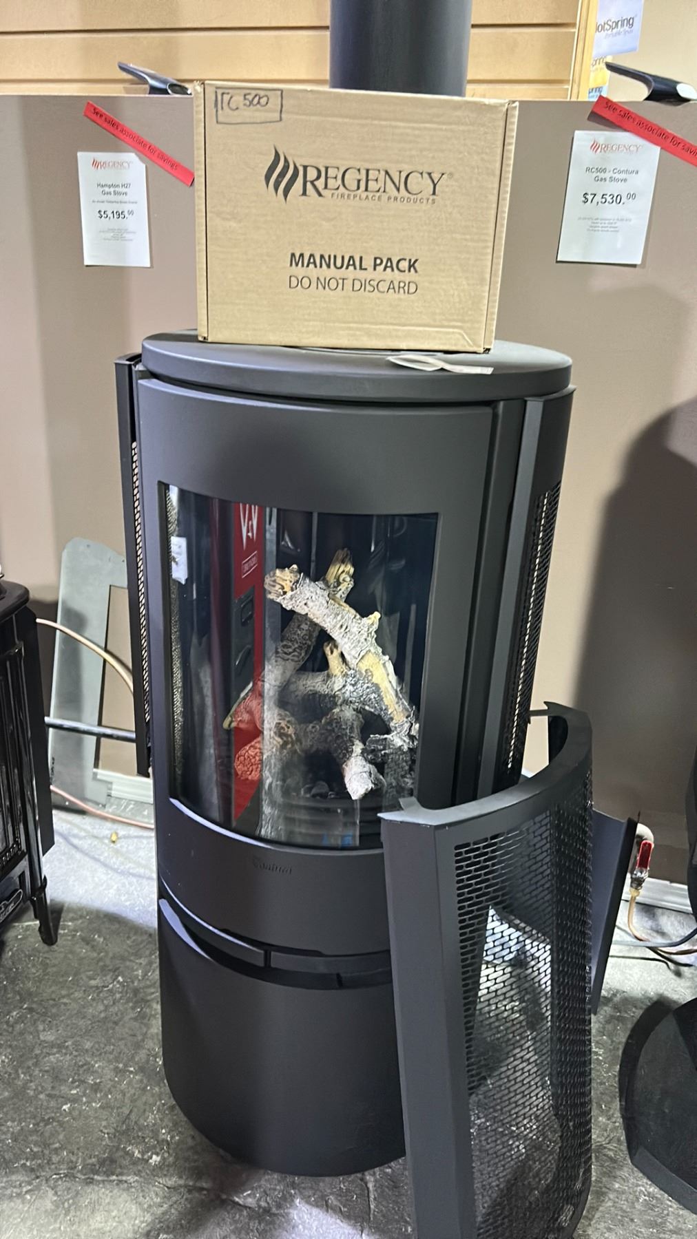 REGENCY RC500-CONTURA GAS STOVE.23,000 BTU WITH TURNDOWN TO 16,000 BTU, HEATS UP TO 1200 SQ FT,
