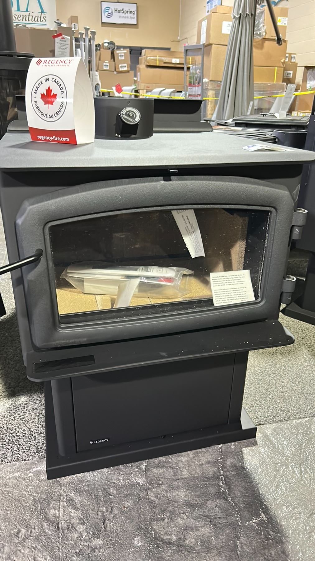 REGENCY WOOD STOVE MODEL F2500M-1 WITH CATALYTIC COMBUSTOR. WITH PEDESTAL AND TRADITIONAL DOOR. EMISSIONS 1.0 G/HR, 76% OPTIMUM EFFICIENCY, 18" MAX LOG LENGTH, HEATS UP TO 2200 SQ FT