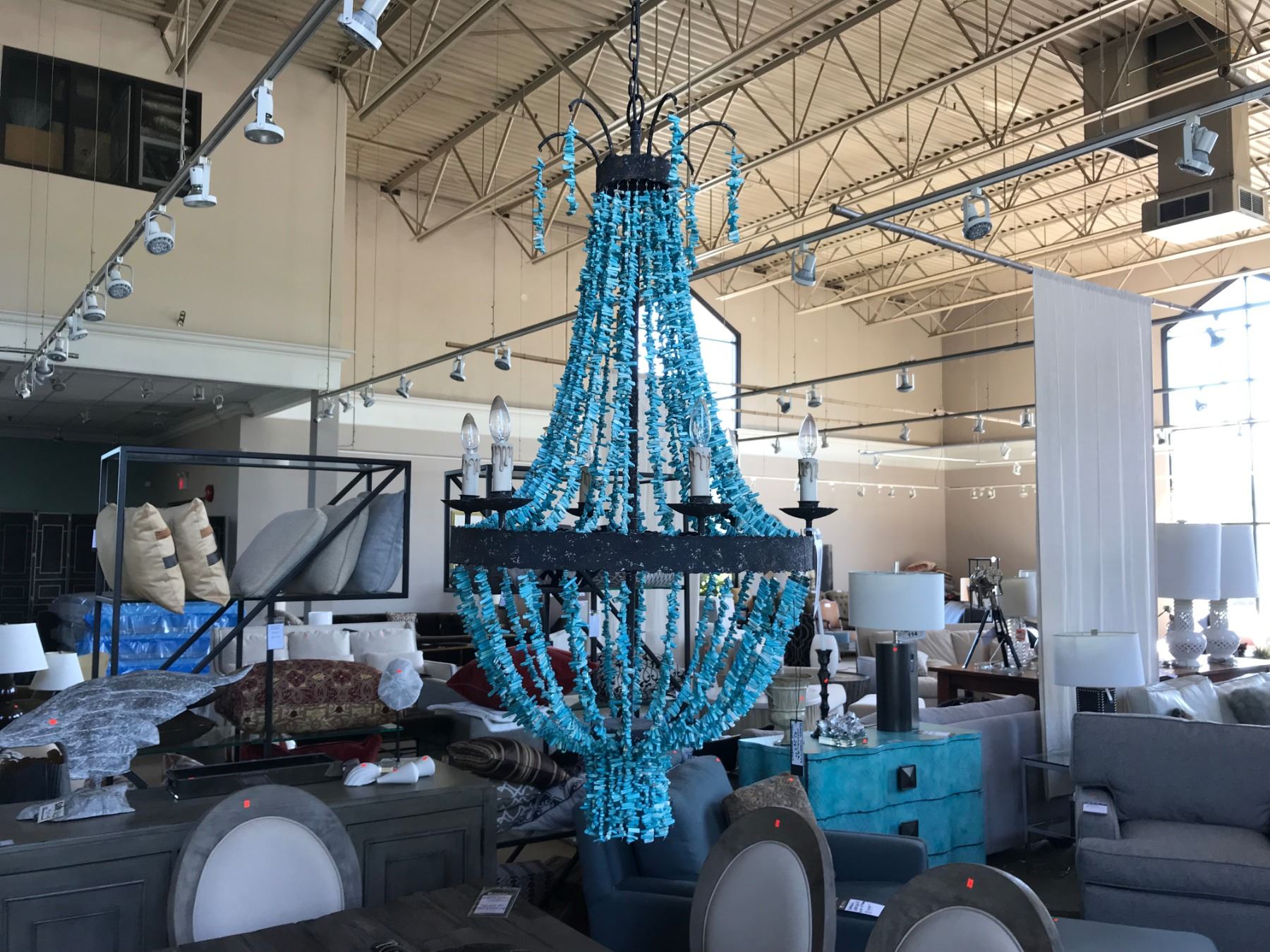 REGINA ANDREWS 6 HEAD TURQUOISE BEADED STYLE CHANDELIER