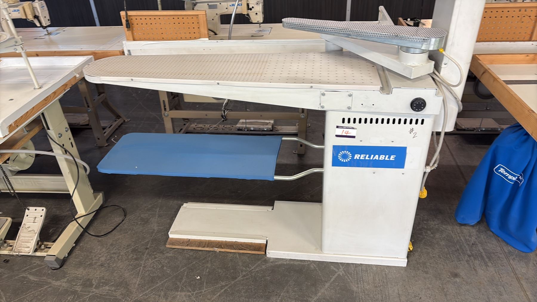RELIABLE 624HA PROFESSIONAL-GRADE, HEATED, AND VACUUM-POWERED IRONING TABLE WITH A SWING ARM AND