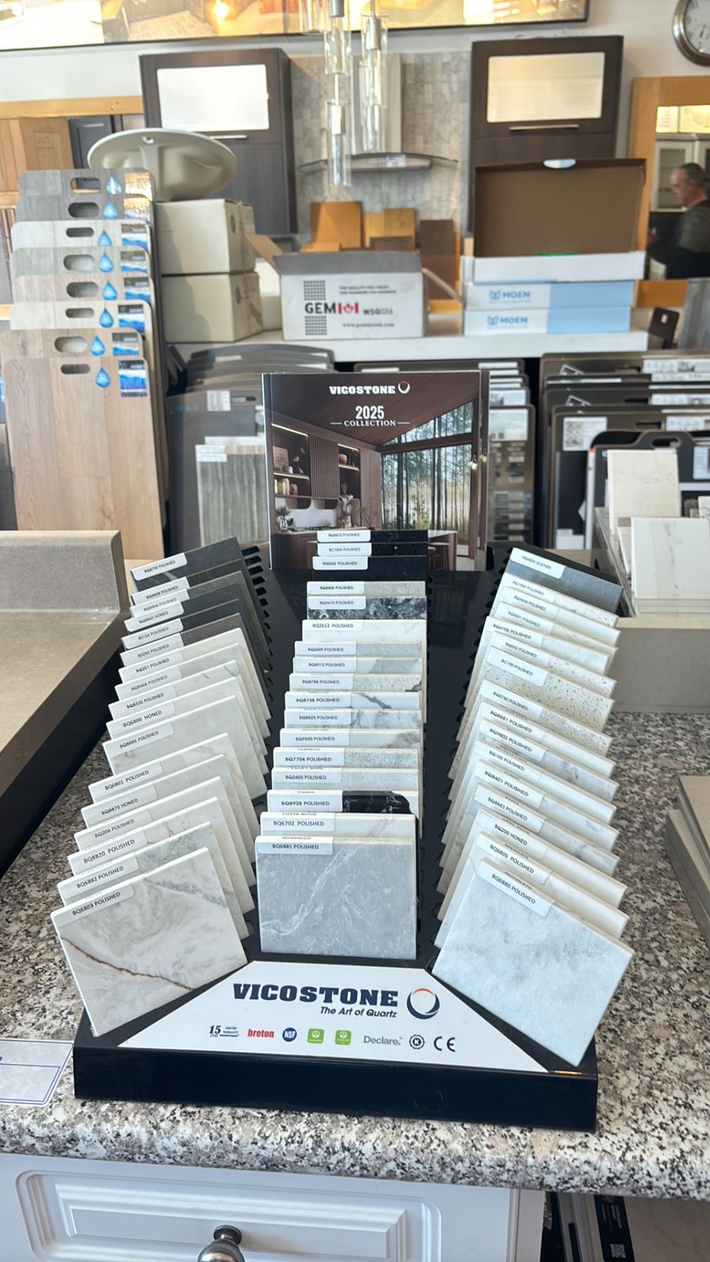REMAINING CONTENTS OF SHOWROOM INCLUDING DISPLAY STAND, GRANITE PIECES, SAMPLES, HANDLES, OPEN SIGNS & SHOWROOM ITEMS