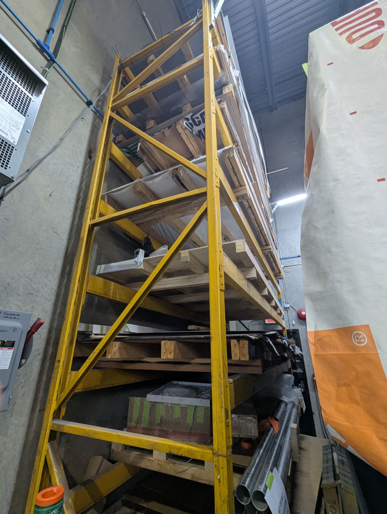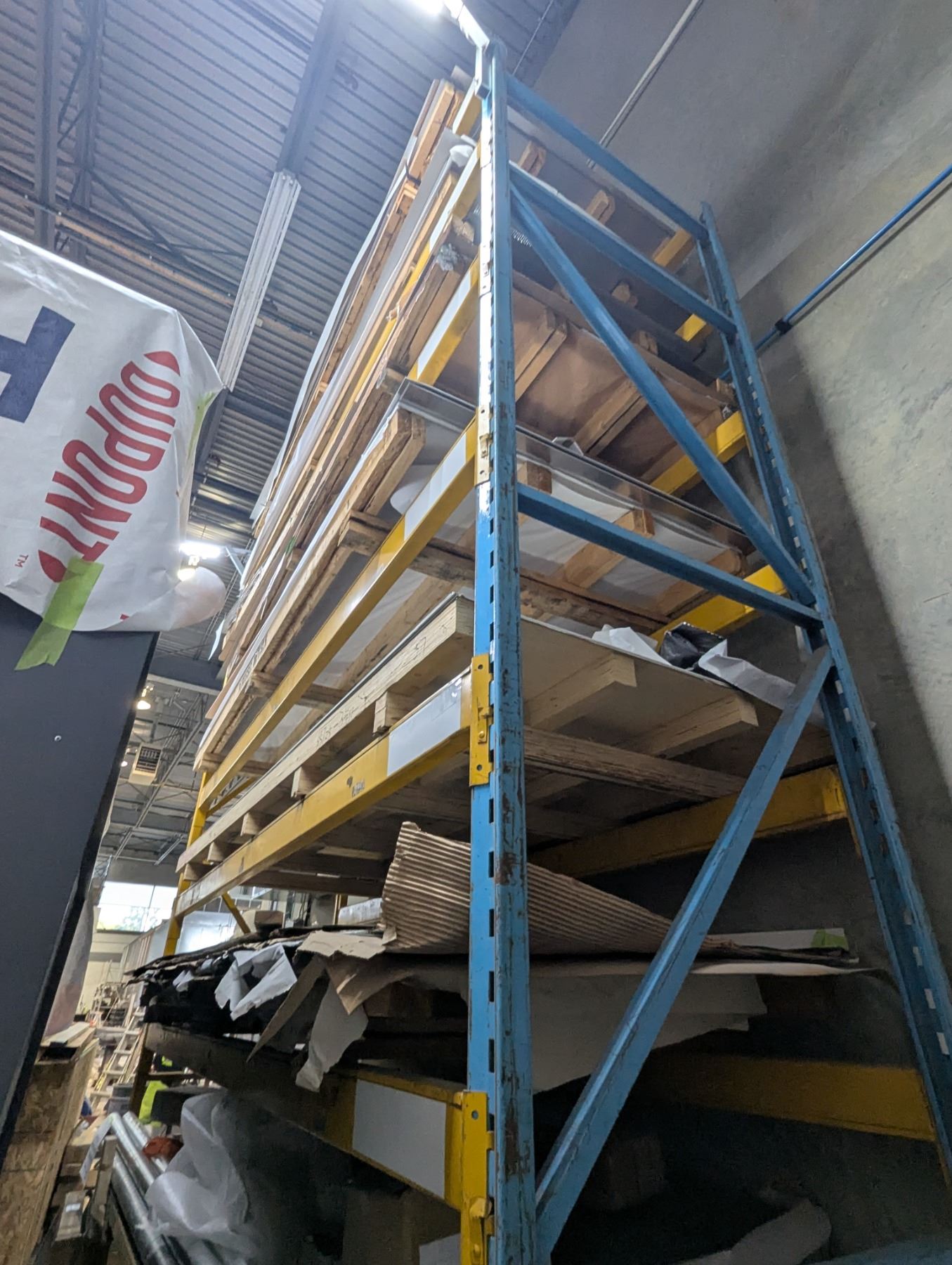 REMAINING CONTENTS OF SIGN MATERIAL LOCATED ON SINGLE BAY METAL RACKING FIRST DAY REMOVAL