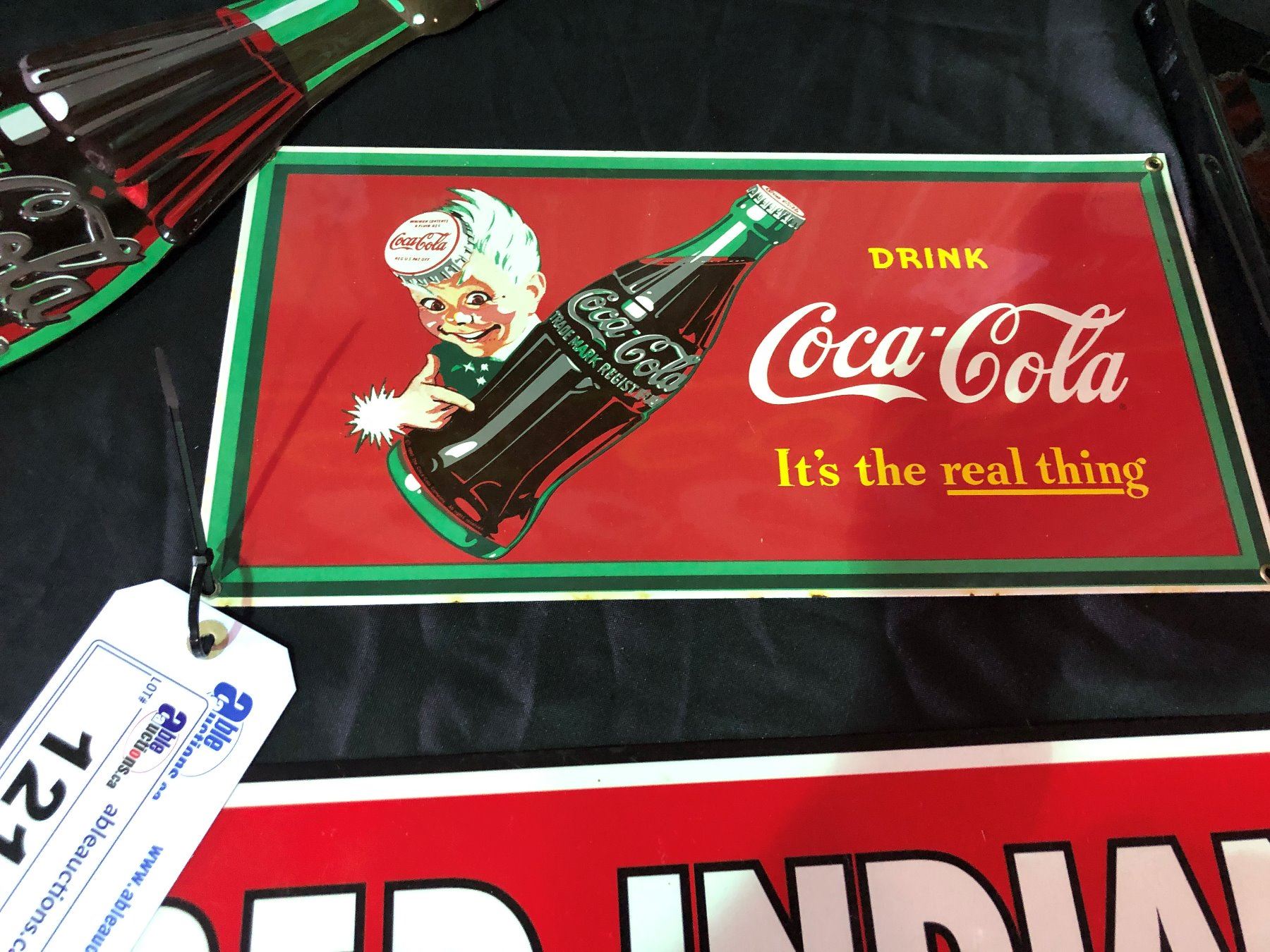 REPRODUCTION PORCELAIN TIN COCA-COLA SIGN WITH SPRITE BOY APPROX 16" X 8"