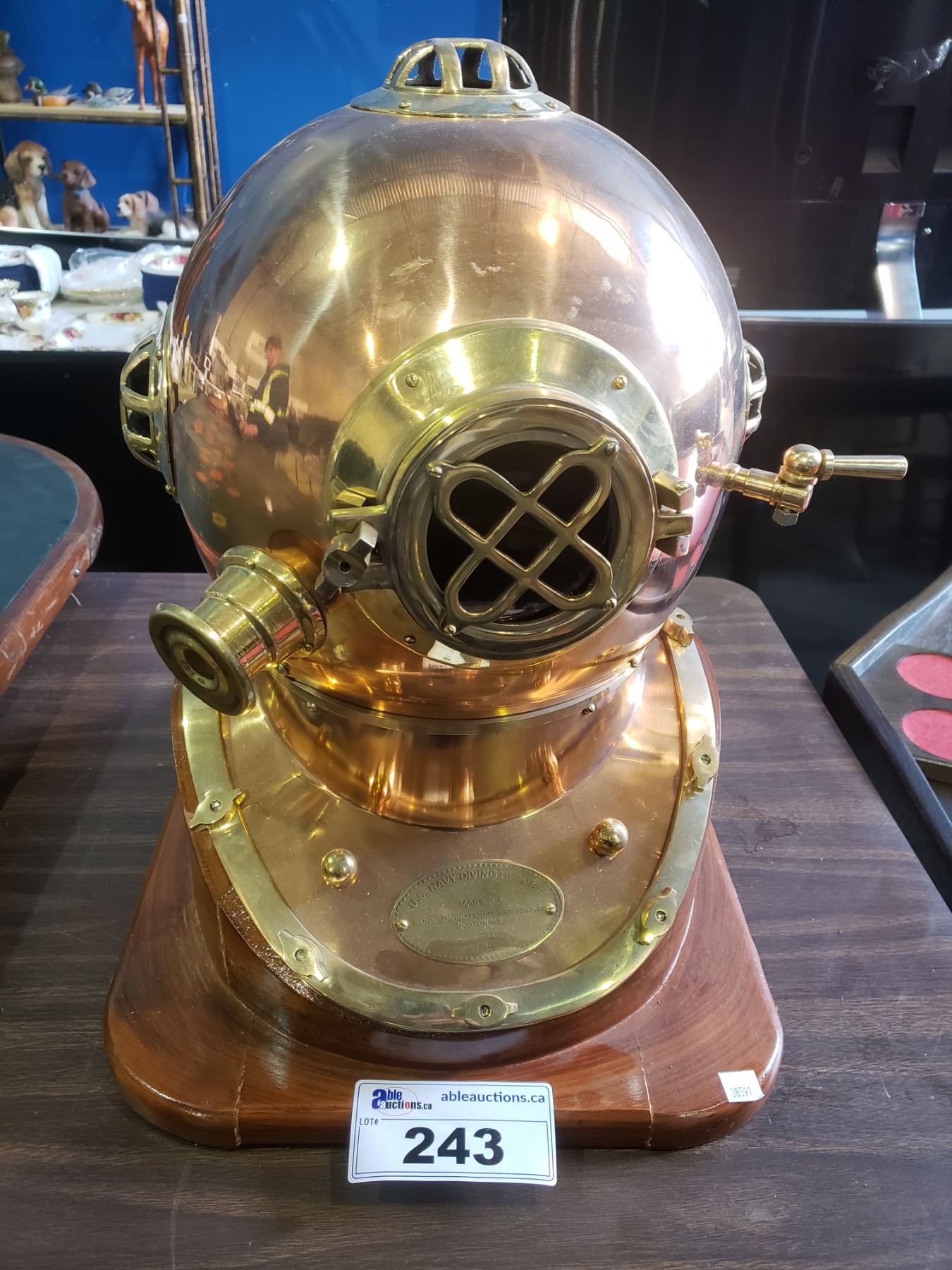 REPRODUCTION U.S. NAVY DIVING HELMET MARK V MORSE DIVING EQUIPMENT CO INC. NO 5255 DATE 1941