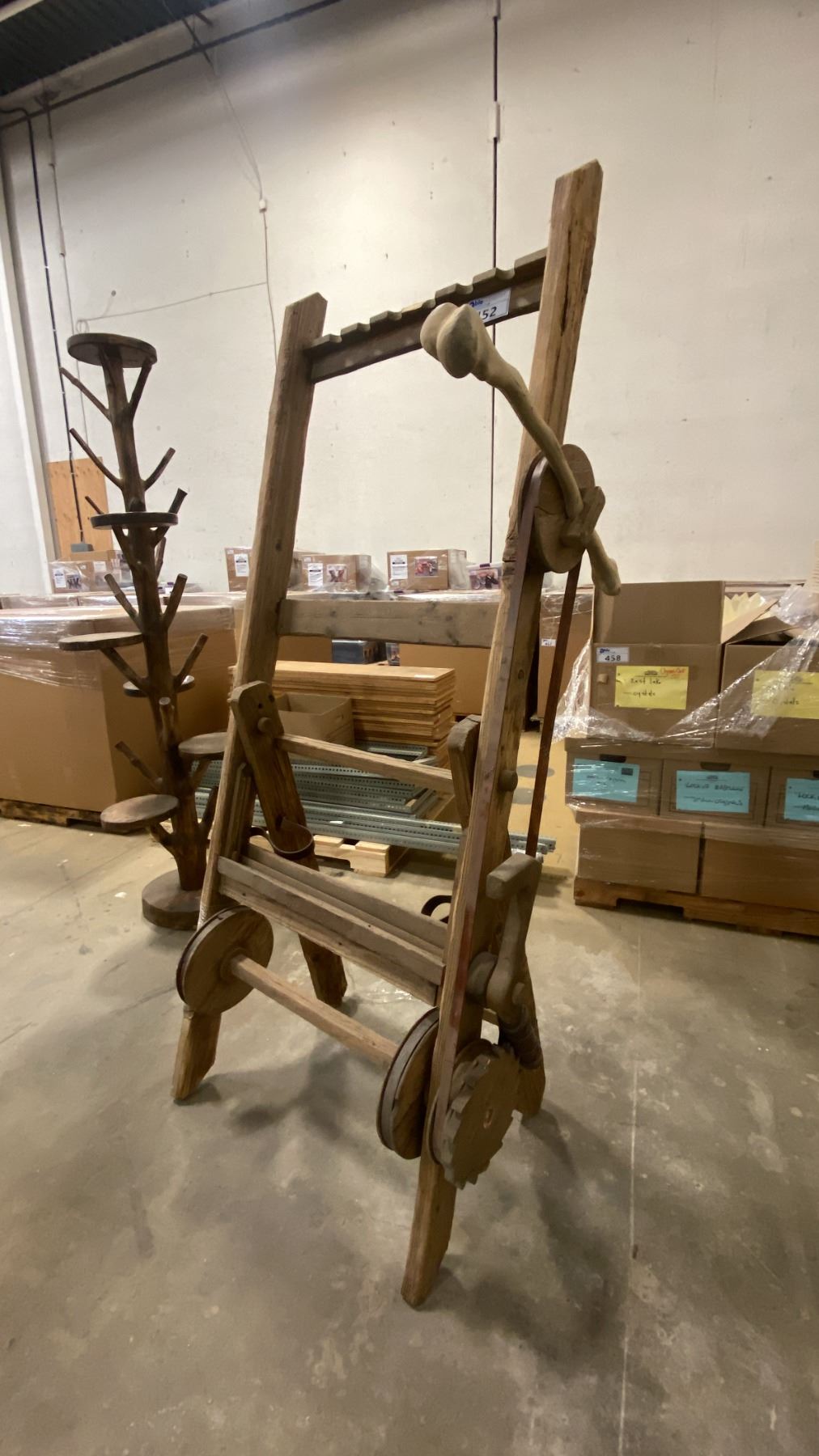 REPURPOSED WOODEN DEC SET PRIMITIVE WOODEN FAUX BONE LEVER RACK PROP