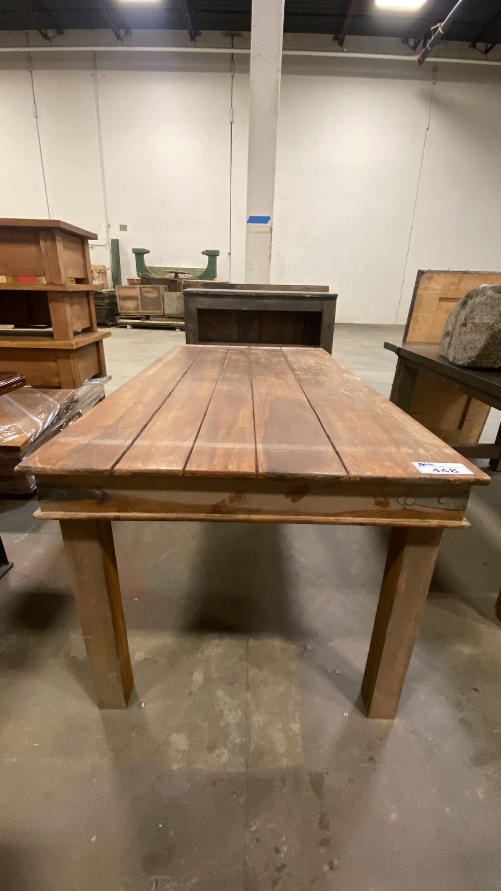 REPURPOSED WOODEN RUSTIC HARVEST TABLE WITH METAL ACCENTS