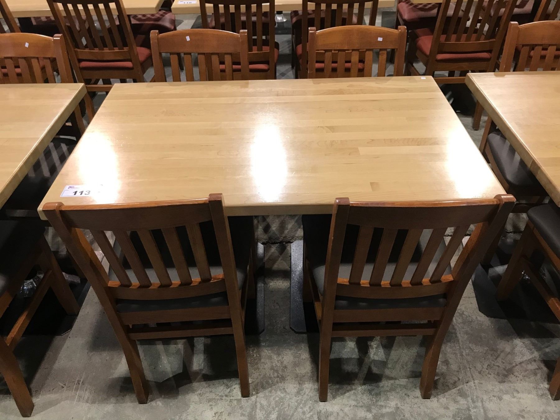 RESTAURANT STYLE TABLE & 4 CHAIRS /W GREY CUSHIONS (48"L X 30"W X 29.5"H)