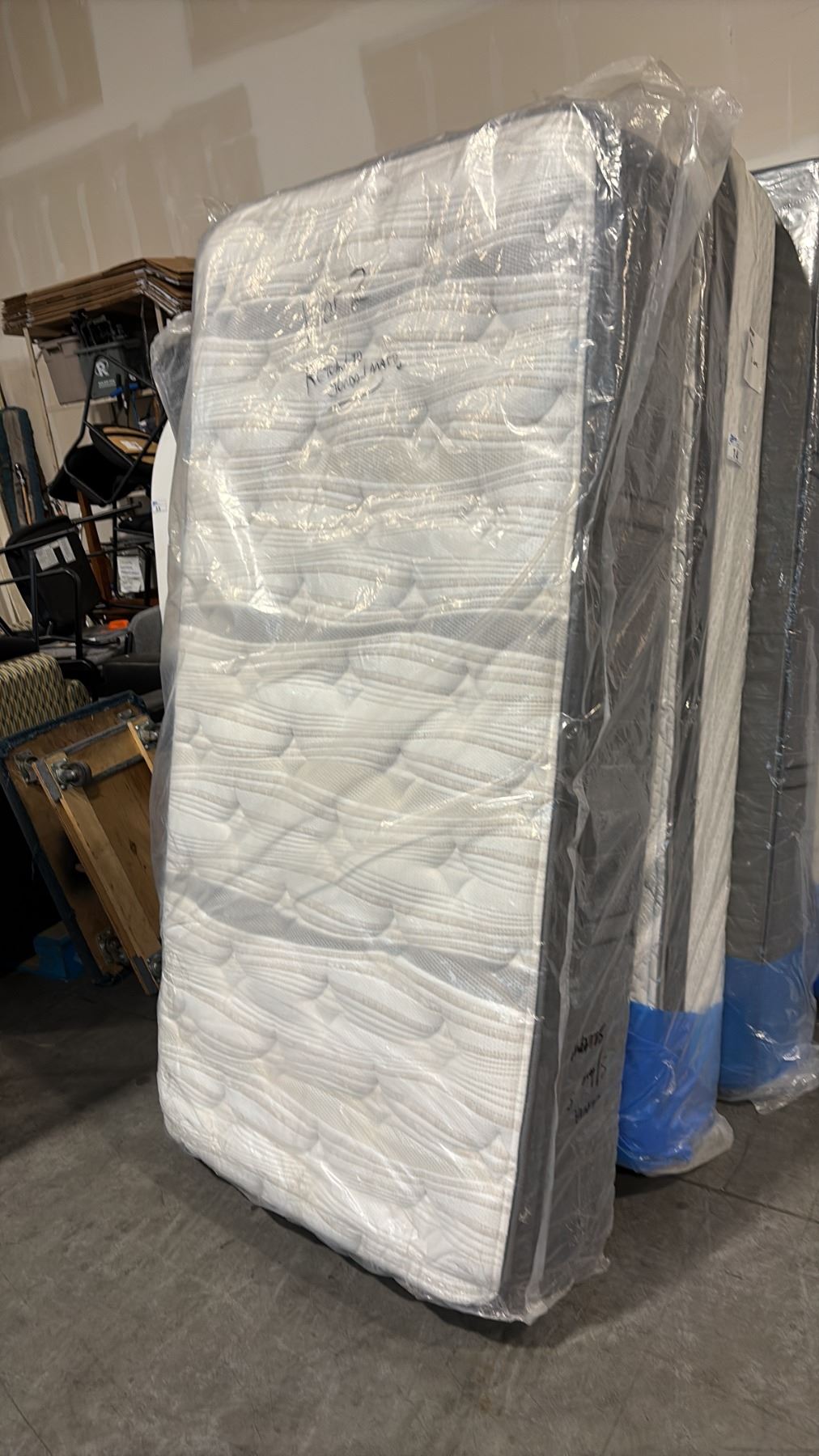RESTONIC OLIVIE LONG SINGLE MATTRESS WITH SOFT TOUCH FABRIC, 1/2" TALALAY COPPER LATEX, 2" DURALAST FOAM, 3 ZONE 8" 884 COUNT POCKET COIL WITH FOAM ENCASEMENT