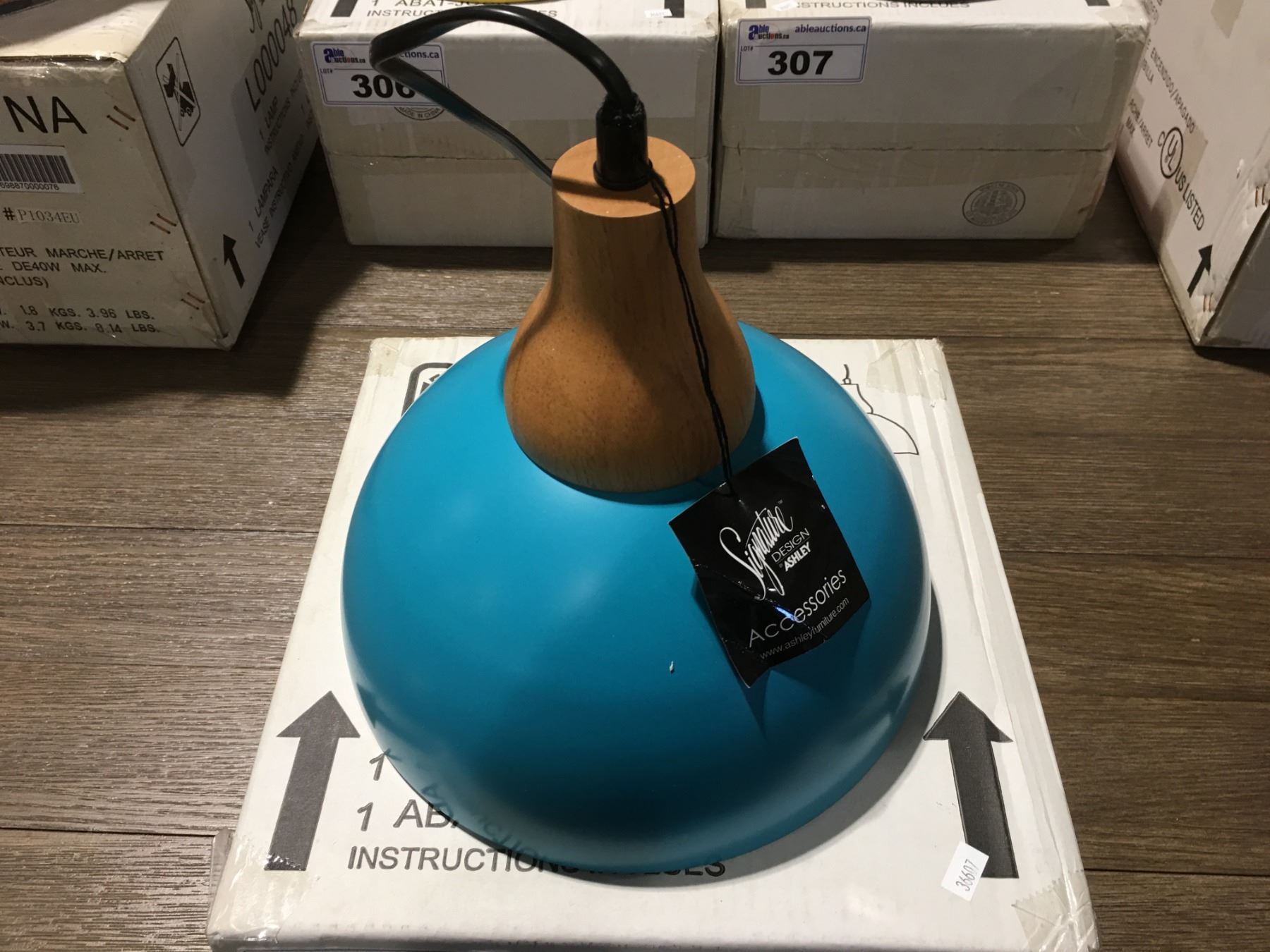 RETRO INSPIRED HANGING LIGHT FIXTURE NATURAL WOOD & TURQUOISE